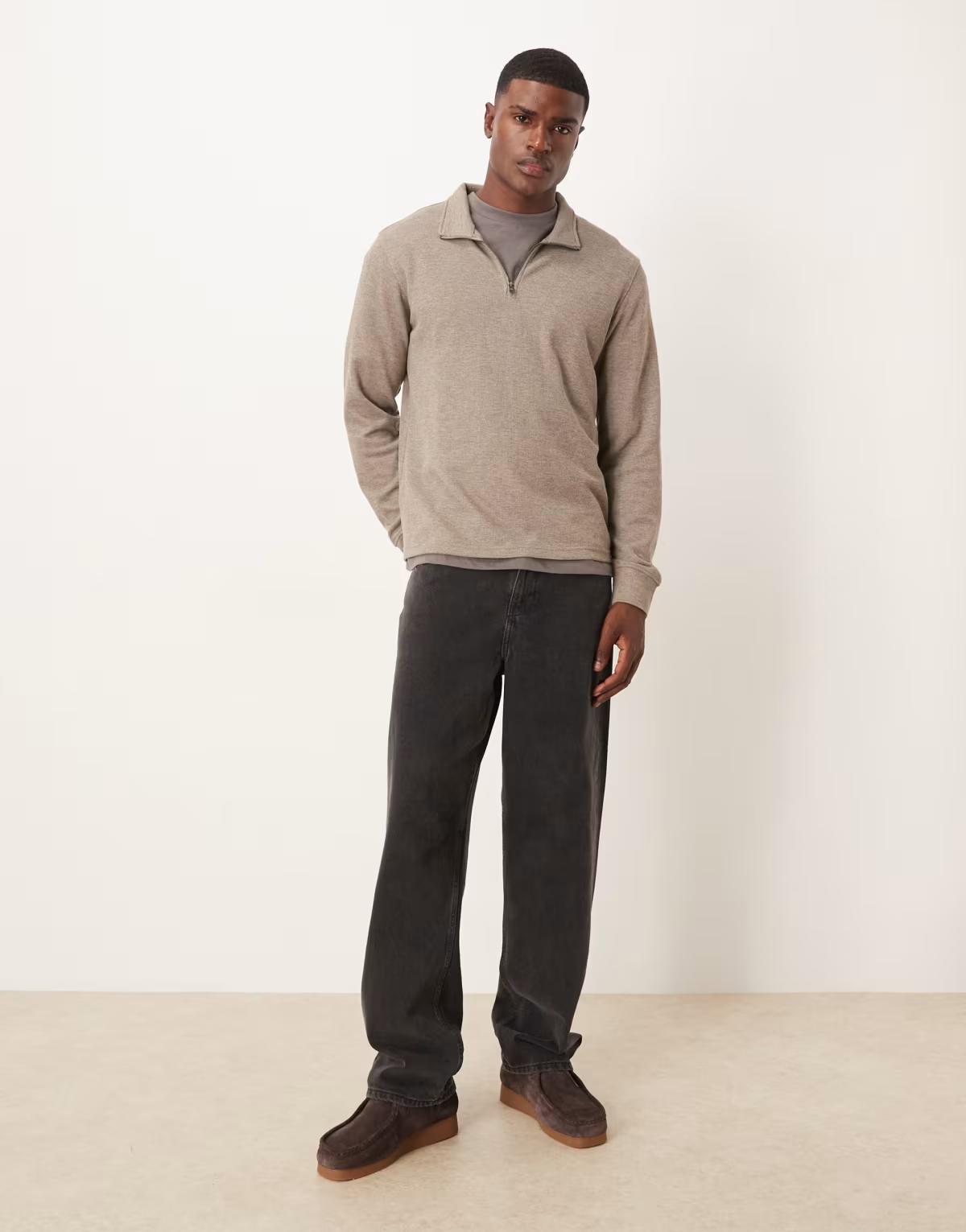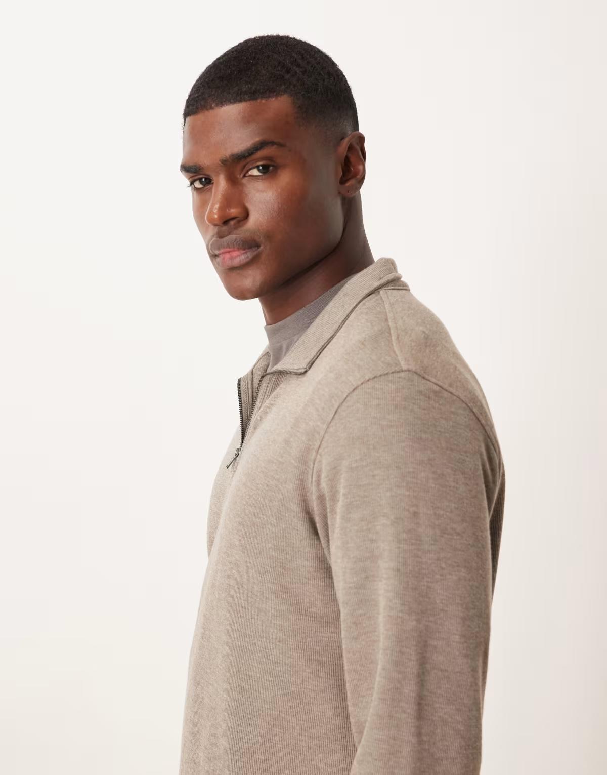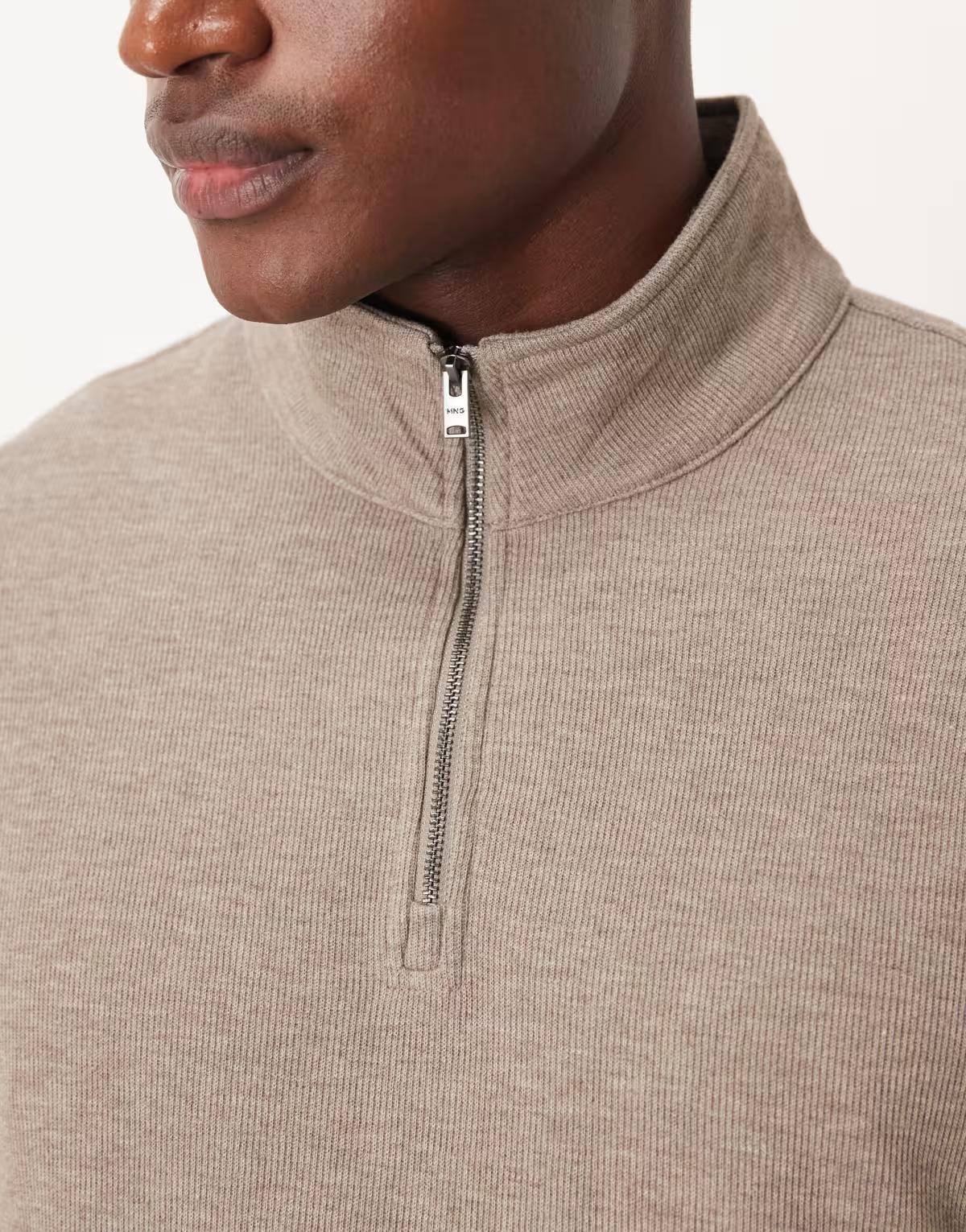Mango quarter zip knitted jumper in latte