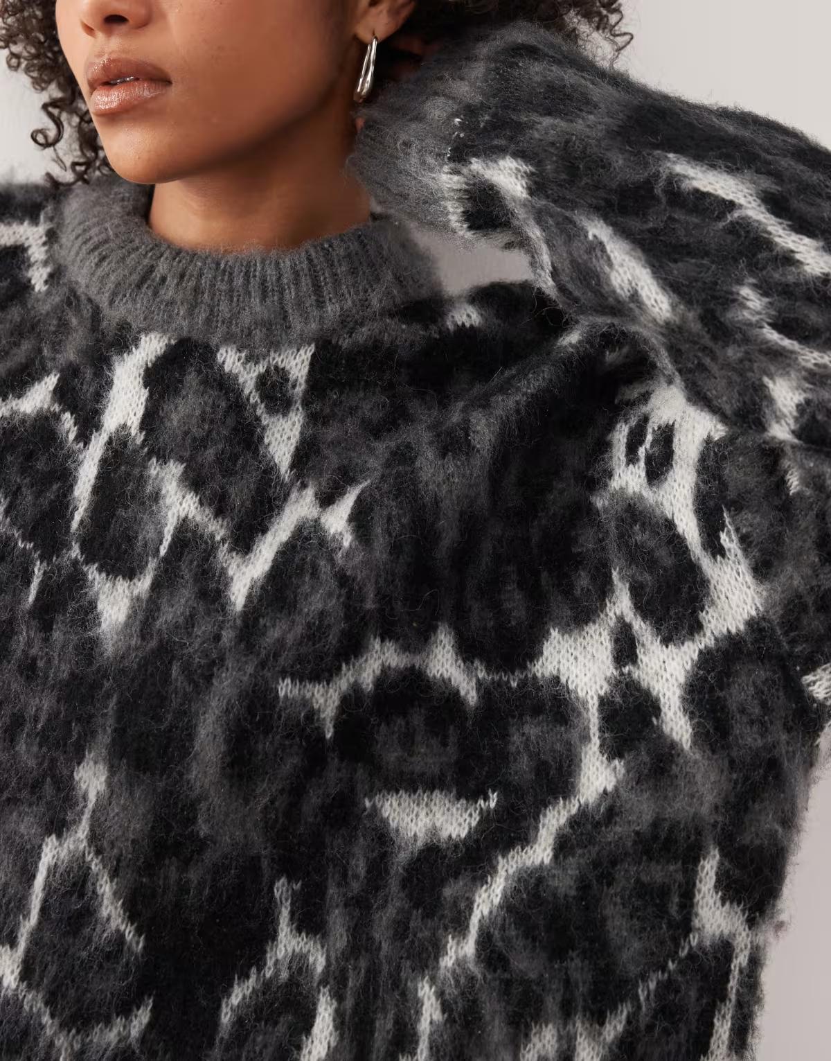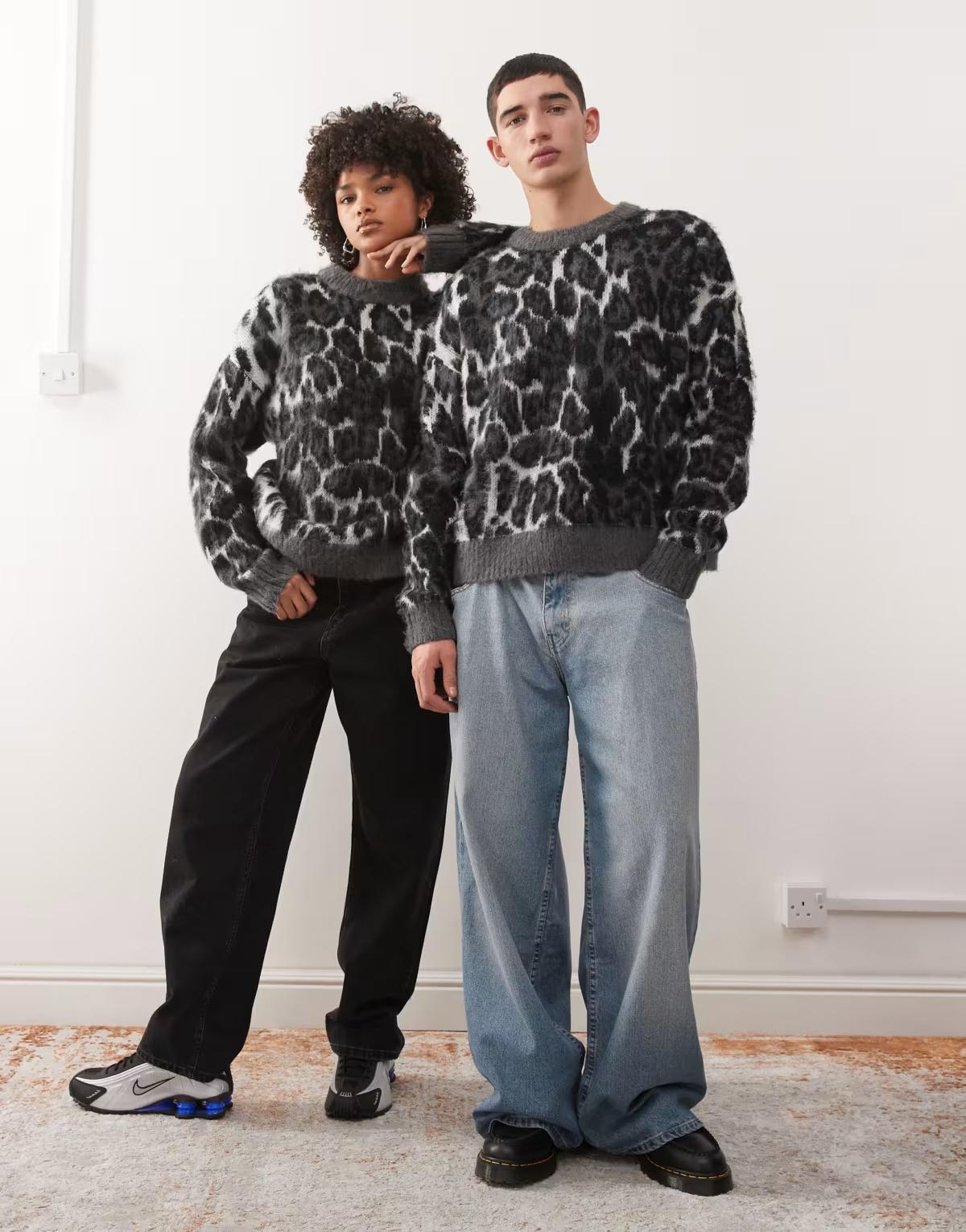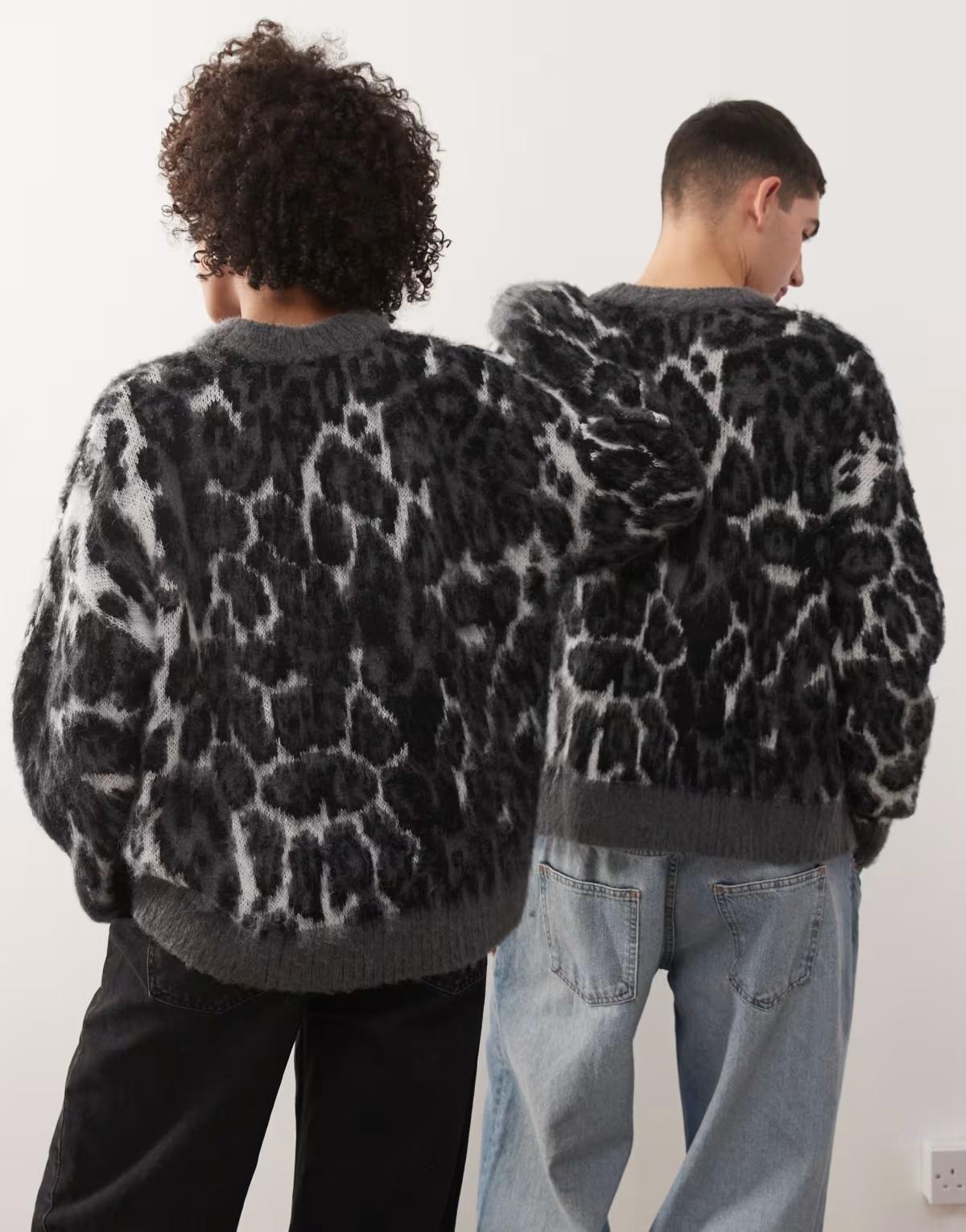 Reclaimed Vintage unisex boxy crew neck leopard print jumper in grey