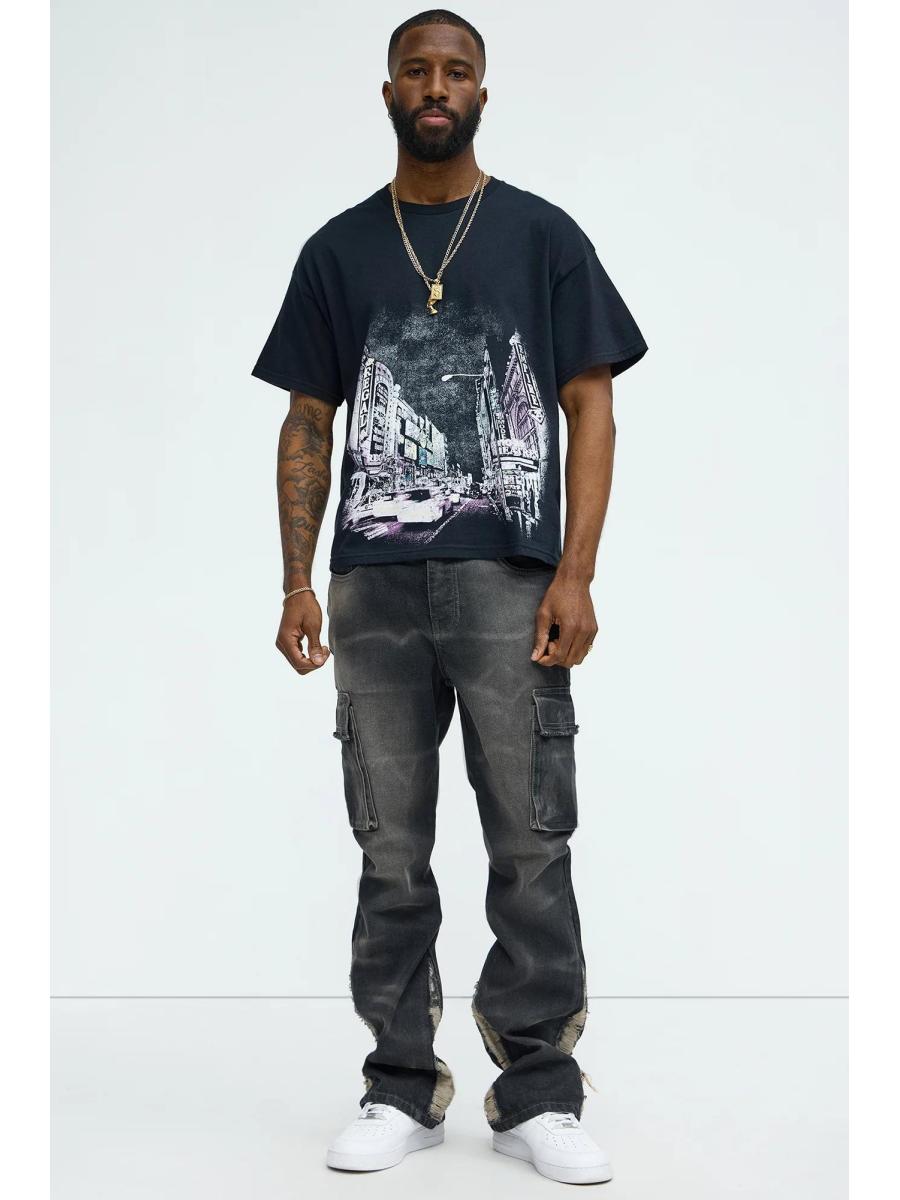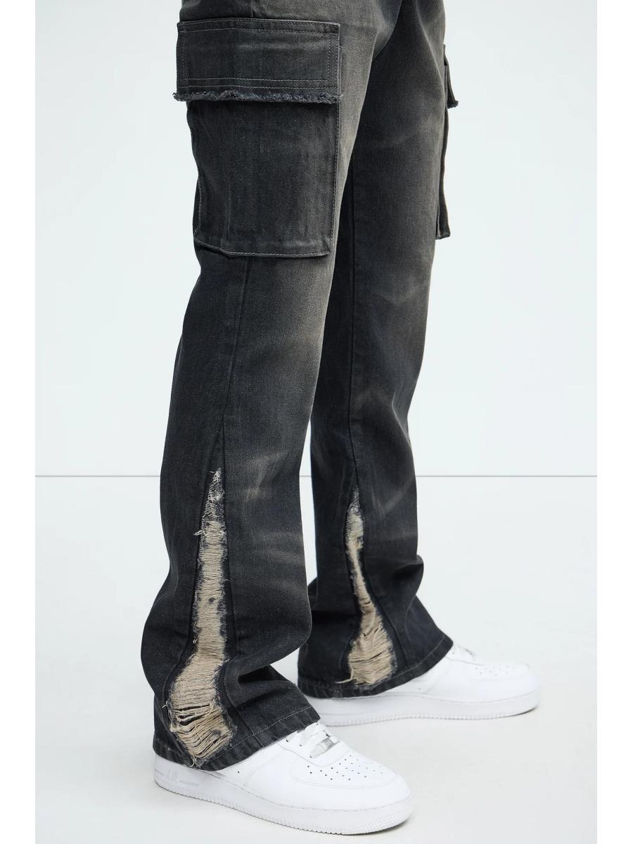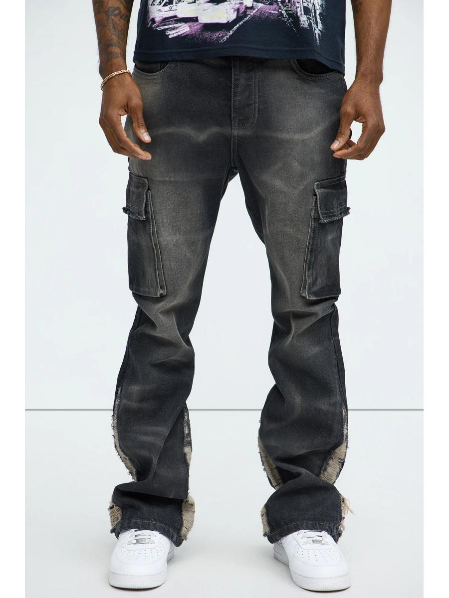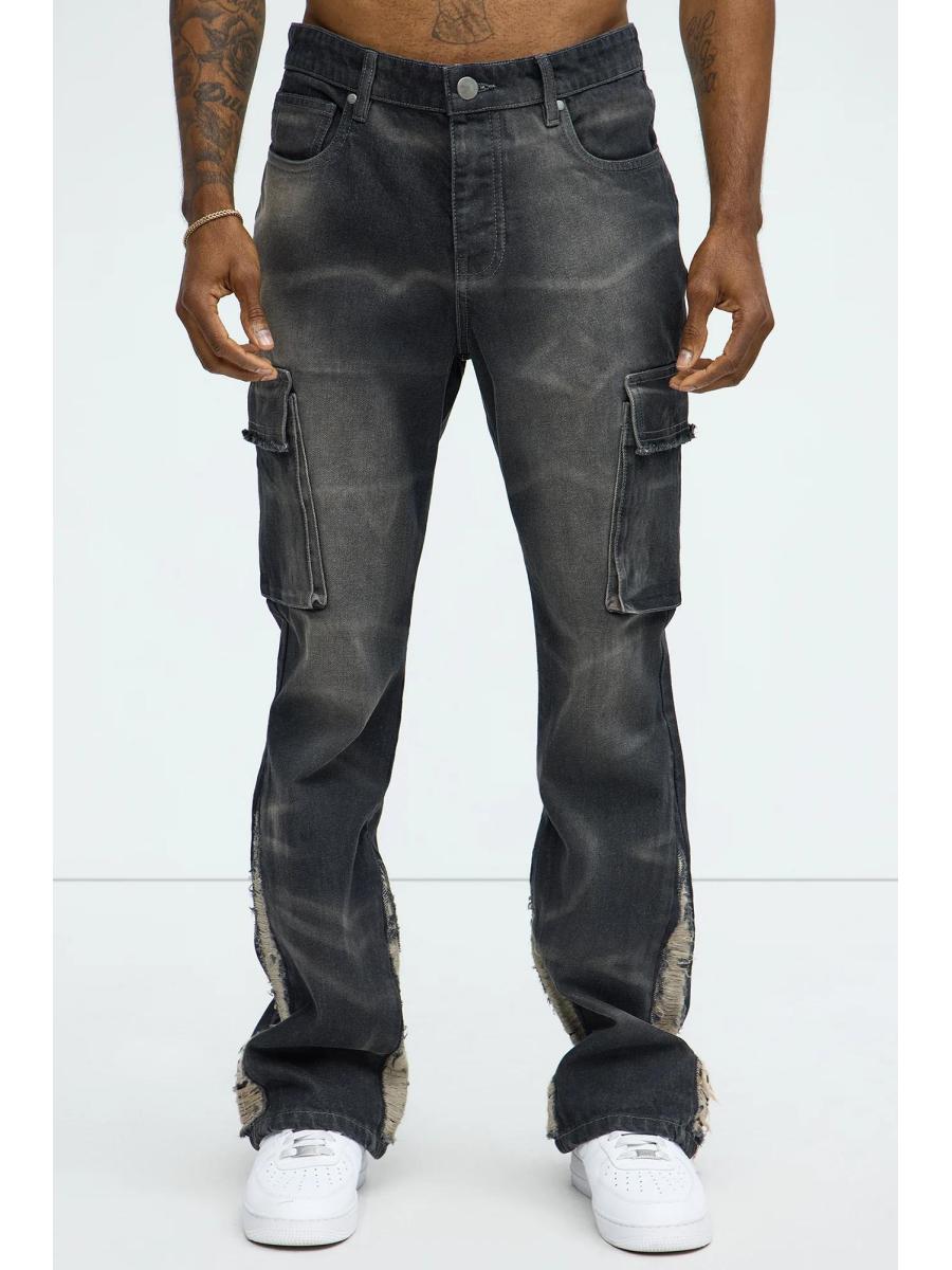 Kaine Stacked Slim Flare Jeans - Black Wash | Fashion Nova