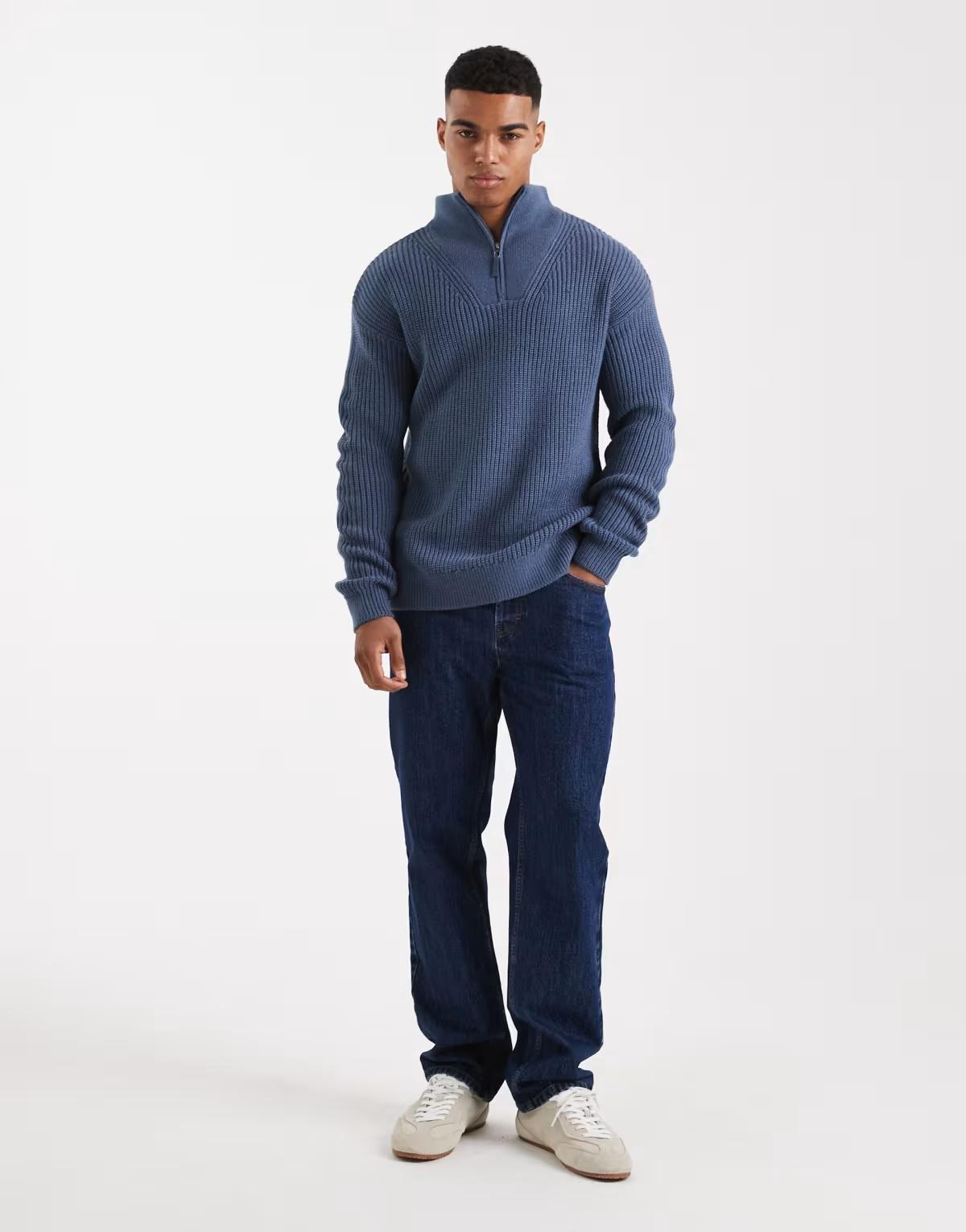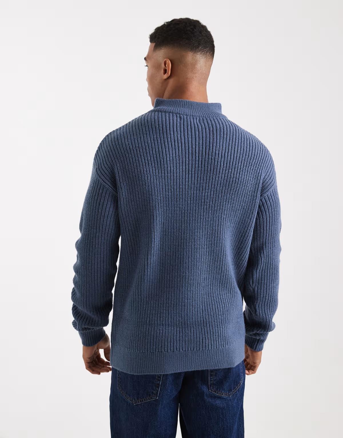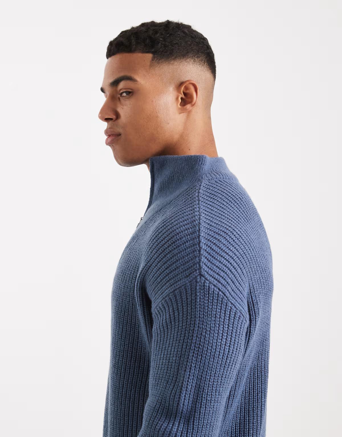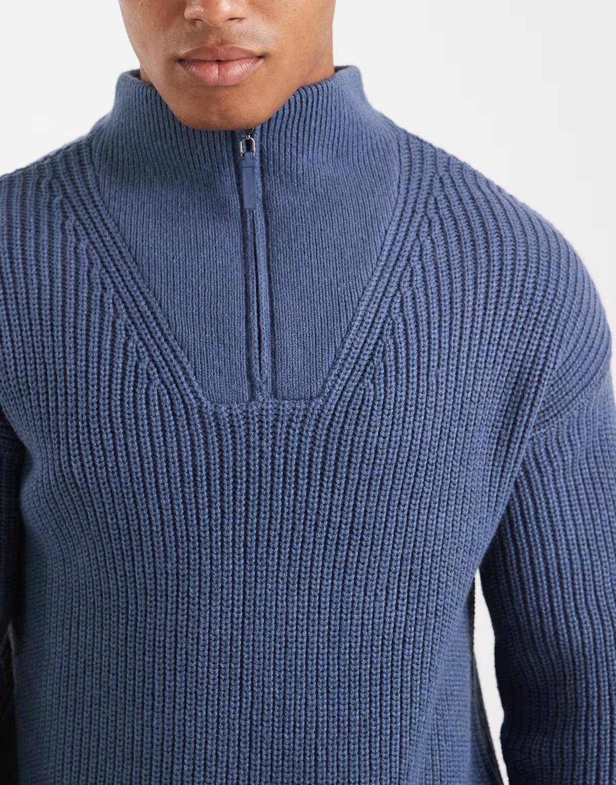 New Look fisherman knit 1/4 zip jumper in mid blue