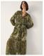 Wear your greens. A little boho, a little Western, this dress nails both trends effortlessly for the new season. The mix of leaf and floral motifs bring a feminine feel, whilst the khaki backdrop complements tan suede accessories to perfection. Green
