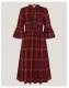Incoming: Your new favourite dress. Showcasing soft corduroy and check patterns in burgundy and blush tones, everything about this dress *screams* Autumn. Topped with frills for a feminine feel, it's finished with floral Chinese knot buttons through the bib. Cute, right? Red