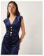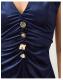 Va-va-voom. Cut from ultra-smooth velvet, this dress has been designed with statement gold-tone buttons, a flattering V-neck and a front slit for extra flair when you make your entrance. Cloaked in midnight blue, this piece is the type you make plans for. Blue