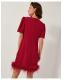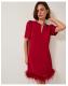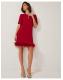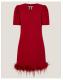 Ruffle some feathers (in style). Designed in luxuriously soft velvet and featuring a mini-length hem with decorative feather detailing, this dress is the ultimate showstopper for festive celebrations. Finished with a sparkly bow at the neckline. Red