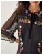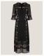 Tens across the board. Designed in ever-romantic lace, with a black slip insert, this midi dress is a dream piece. Featuring multi-coloured embroidered flowers, buttons all the way down and flowy ¾ sleeves, it's the perfect pick for an after-work date night. With a ruffled collar and velvet tie to finish. Black