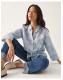 Warning: may cause compliments. Covered with blooms, this shirt is a breath of fresh air in your wardrobe. Designed in classic button-down fashion, it features a collar and three-quarter sleeves, making it perfect for in-office days. Blue