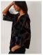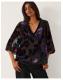 Flowers that won't wilt. For those in-office days, slip on this devoré blouse top for an elevated autumn look. Dotted with vibrant, velvety florals, it's designed with a flattering V-neckline and sheer ¾ sleeves. Blue