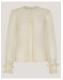Fluid forms and frilled trims. Crafted with flirty lace, this shirt adds a touch of feminine flair to your weekly rotation. Designed with ruffled cuffs and and a line of buttons, it's the perfect pick that takes you from desk to drinks. Merlot anyone? Ivory