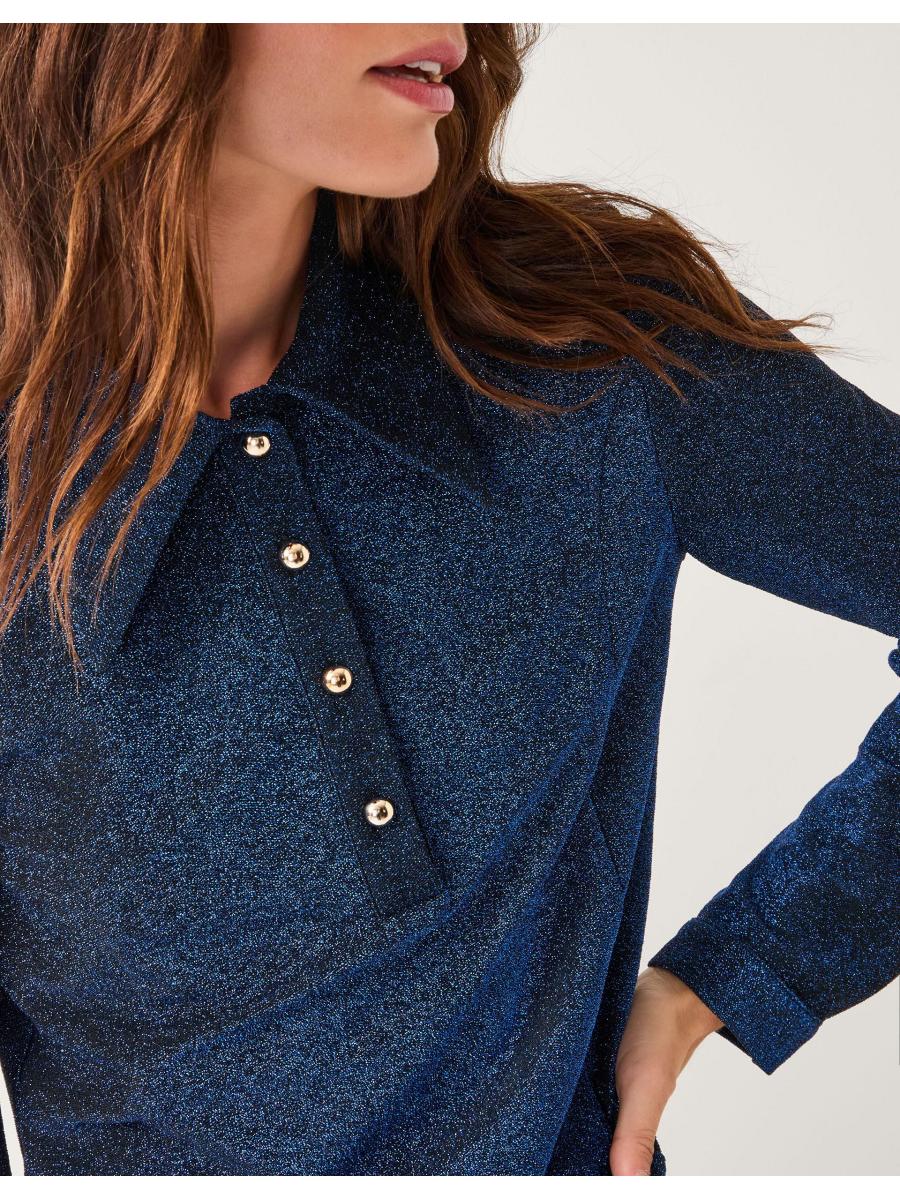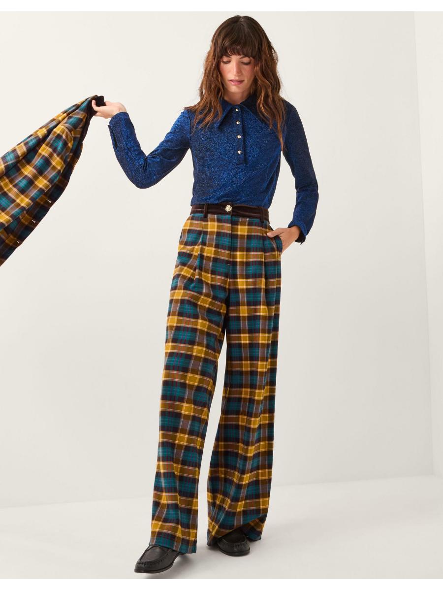 Studio 54 meets countryside-core. Designed for long winter nights, this top is framed with long sleeves and a sharp 70s-inspired collar, giving a nod to the vintage vibe Sarah loves. Stitched with glitzy threads for a party-primed finish, take a leaf out of the SCW style handbook and pair with tartan tailoring for an out-out look that means business. Blue