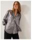 Steel the show. Ready to dazzle in the boardroom and at the bar, this blouse is framed with blouson sleeves and a tie-up neck detail to style in whatever way you wish. Thanks to its metallic finish, it instantly elevates all your looks. Silver