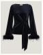 Morticia Addams-approved. Crafted in luxurious velvet, this top is sure to become a go-to for evening drinks. Designed with feather trimmed sleeves and a statement tie detail at the waist, it's so fun and flattering, all your friends will want to wear it, too! Black