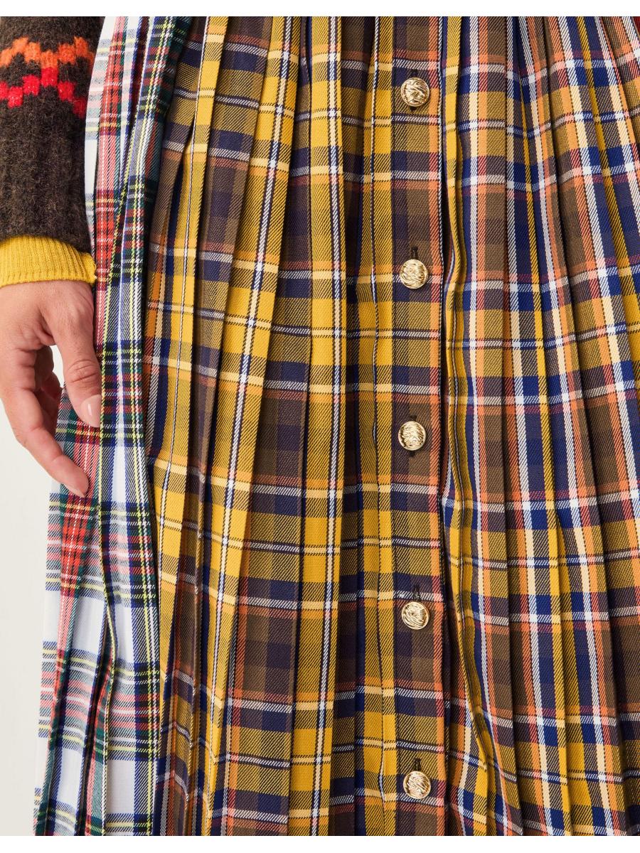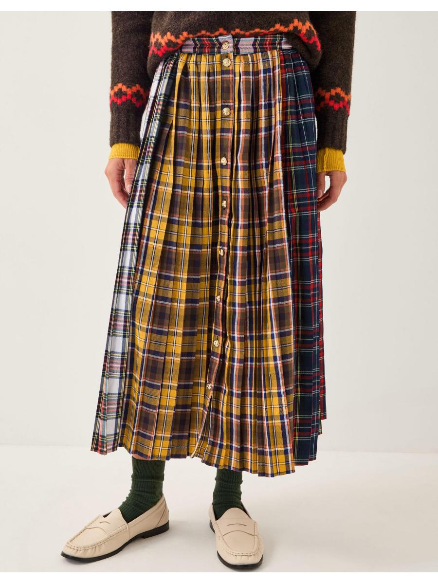Check this out. Taking tartan to the next level, this skirt is made for frolicking in the countryside or strutting off down the high street. Showcasing pleated panels of heritage checks in a mix of gorgeous, earthy tones and bright, primary colours, it's designed with a high waist, midi-length hem and gold-tone button fastenings. For a Sarah-approved 'fit that *screams* Autumn, style with your quirkiest knitwear and boldest accessories. Yellow