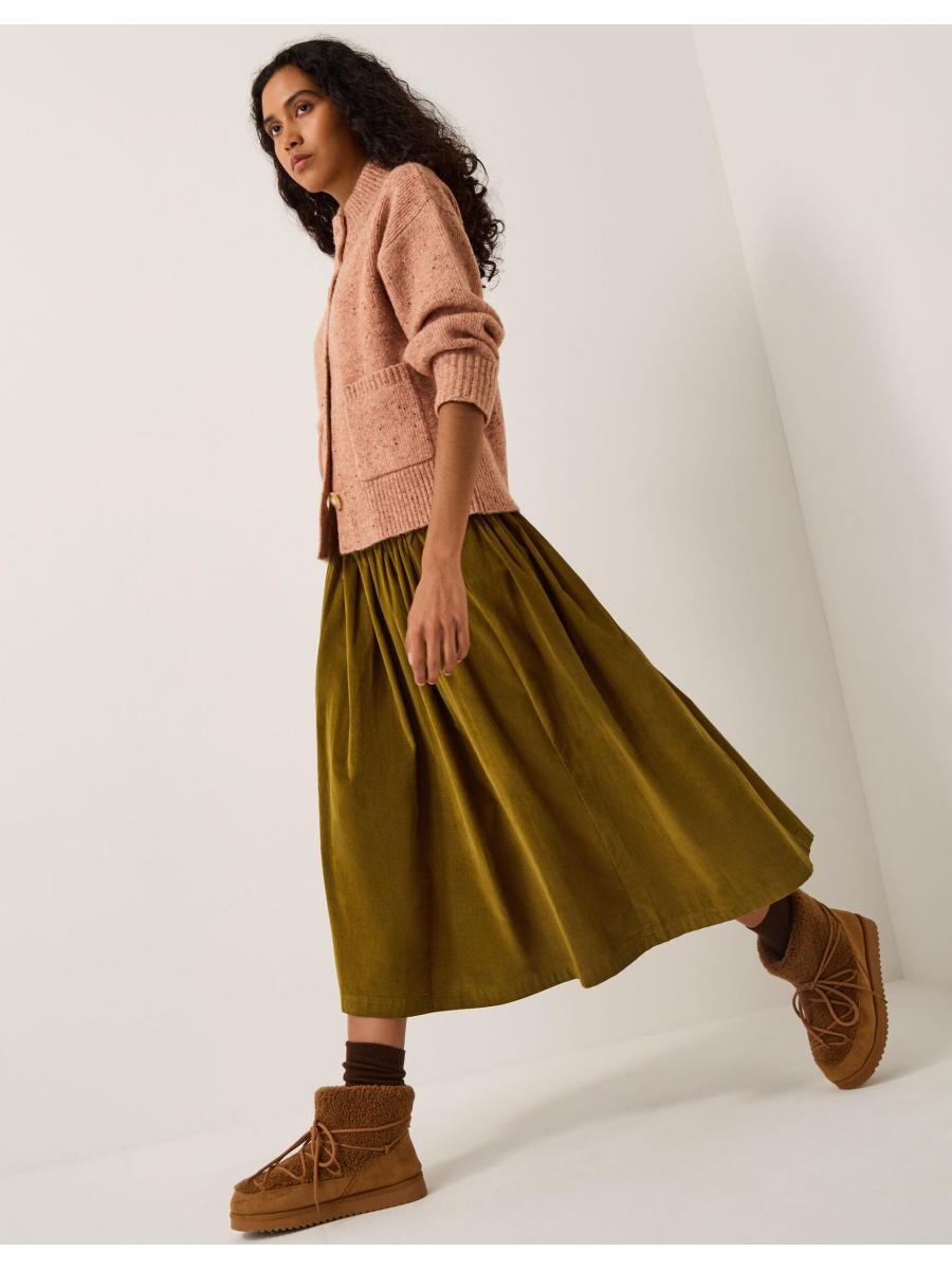 Description Vintage chic. Falling to a midi-length, this A-line skirt is designed in textured corduroy and features a thick waistband for a flattering finish. Complete the look with a cardi and knee-high boots. Green Details Fabric & Details Outer: Cotton (b) 100% L 80 CM machine wash Zip fastening Plain Weight: 150.0 ID: 10060870061b-details__content-item"> Outer: Cotton (b) 100%