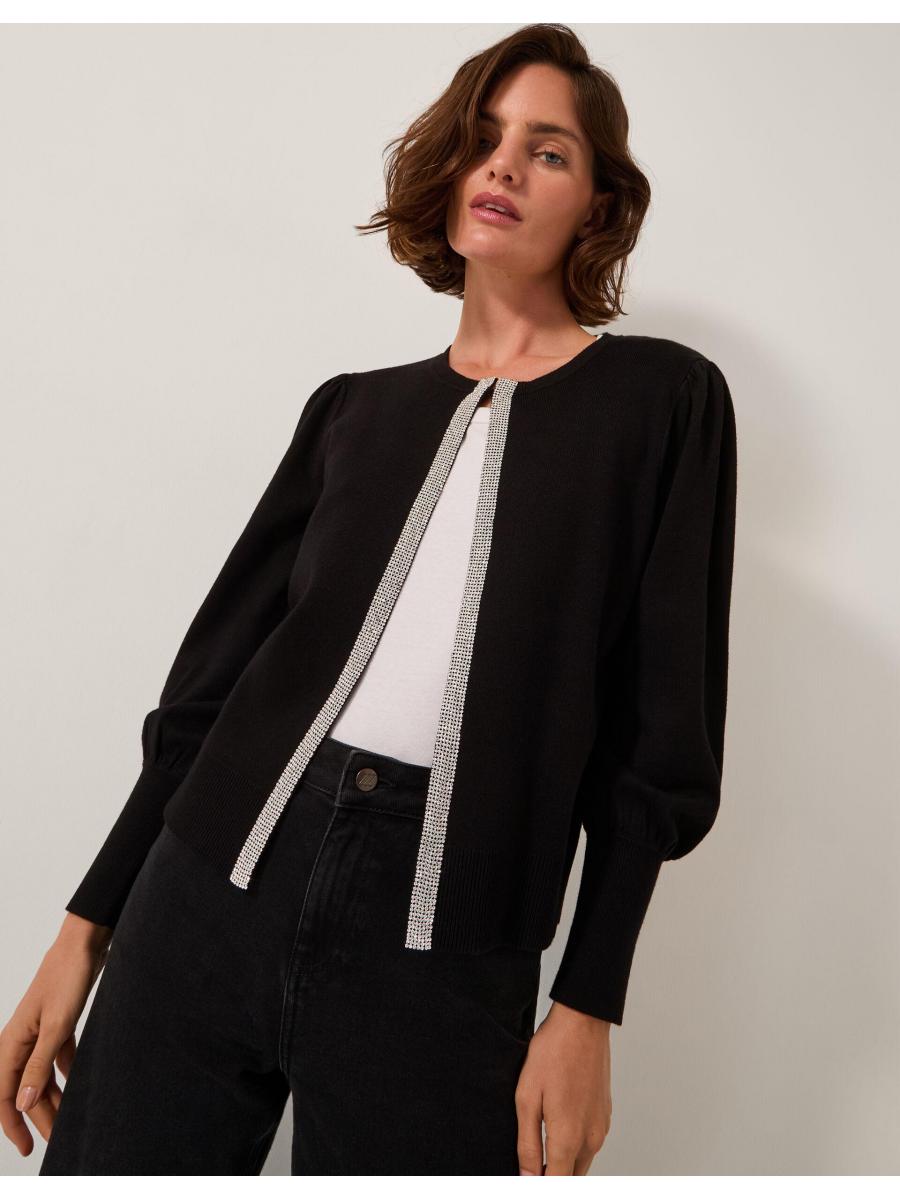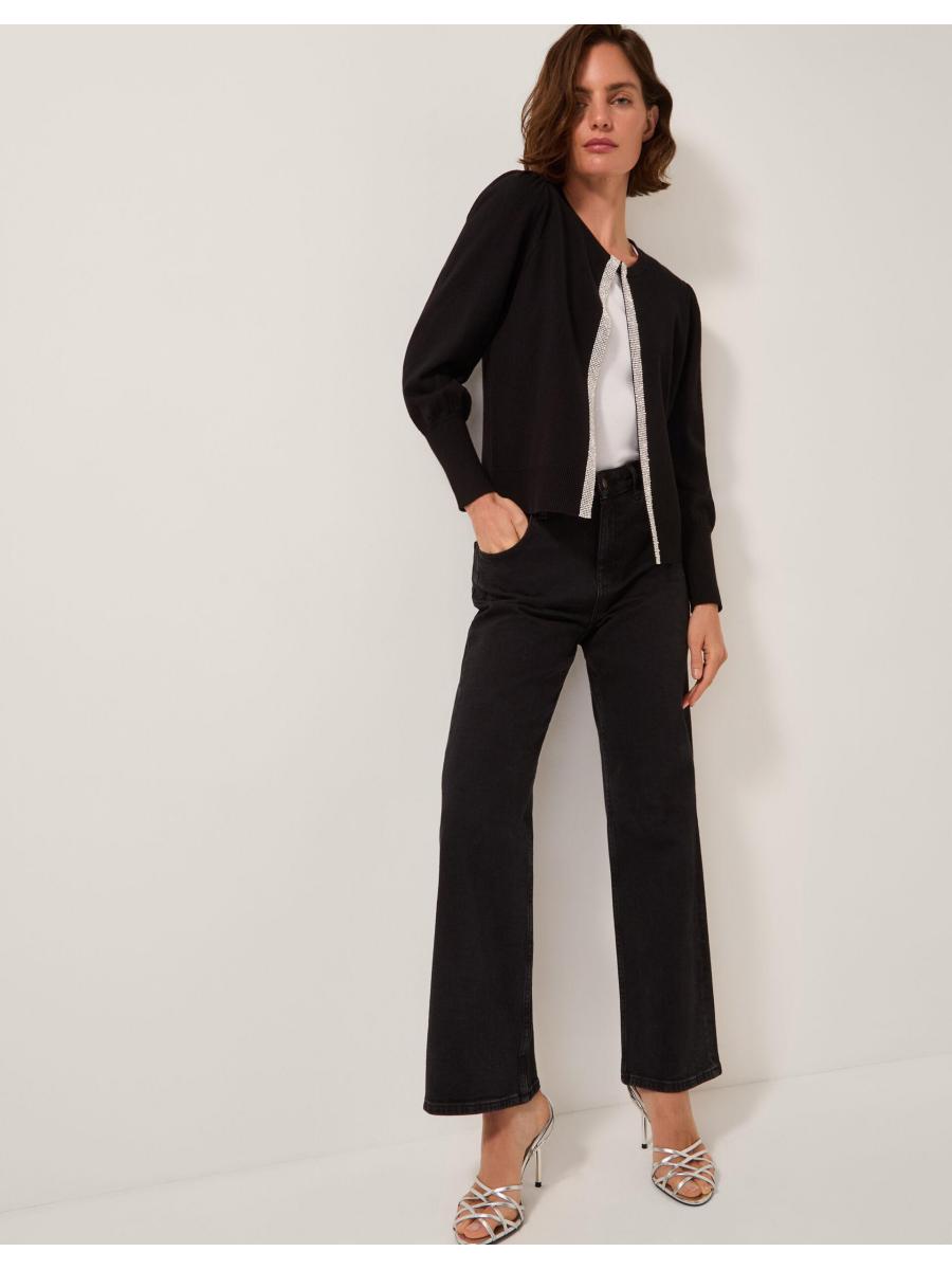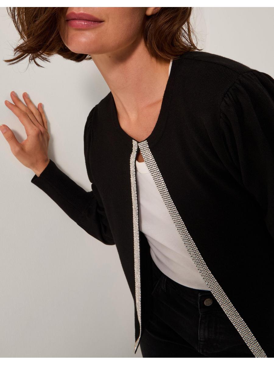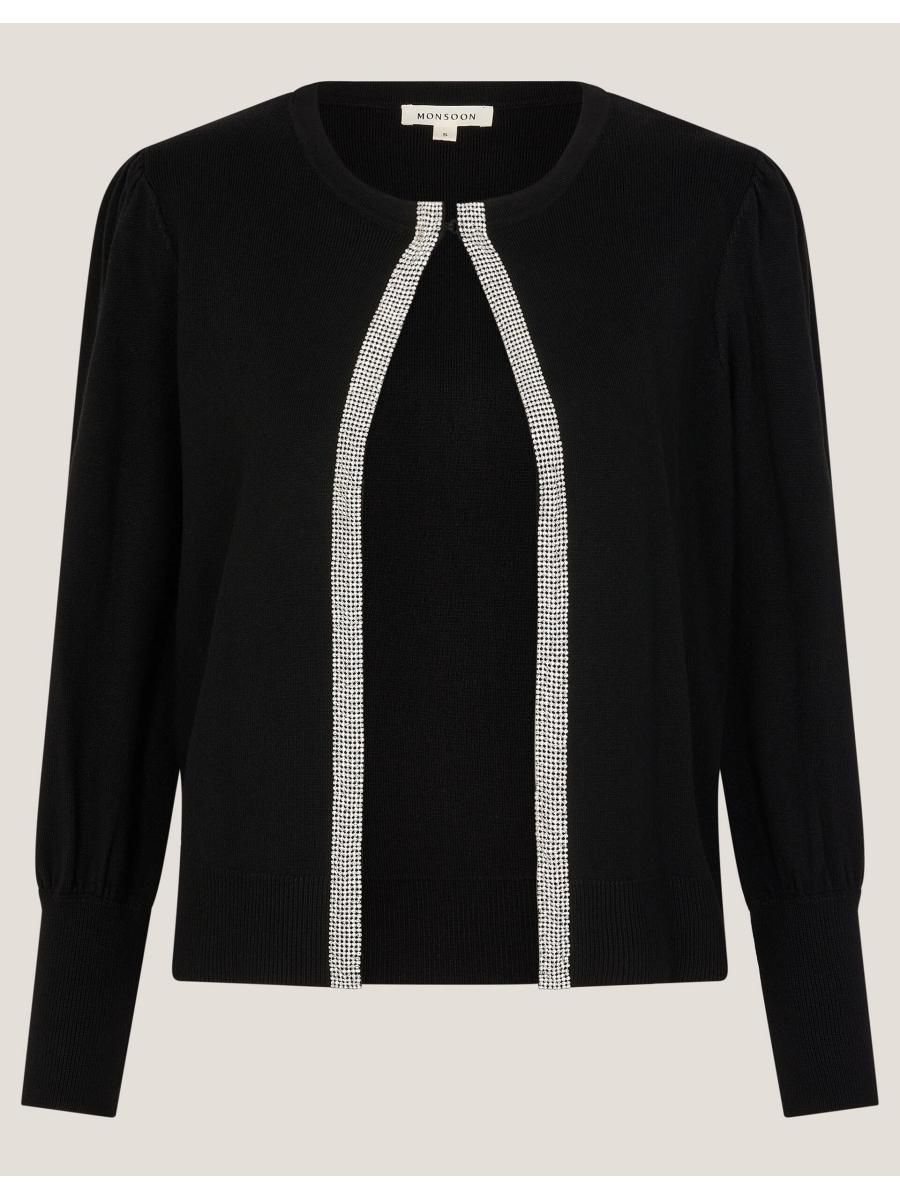 Talk about a sparkly upgrade! This classic knit features a line of diamantés, giving you the perfect piece to jazz up your weekly rotation or flaunt at impromptu drinks. Black