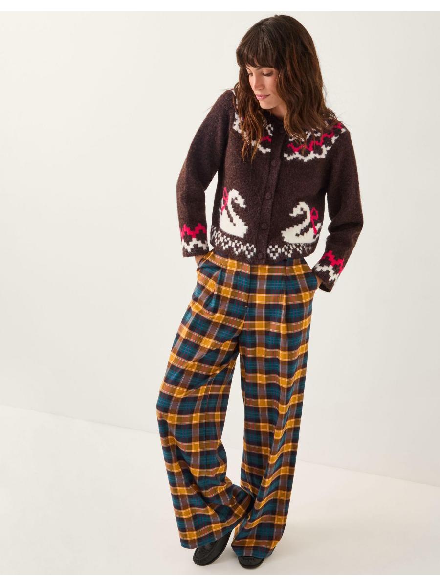 Monsoon x Sarah Corbett-Winder Swan Fair Isle Cardigan Brown