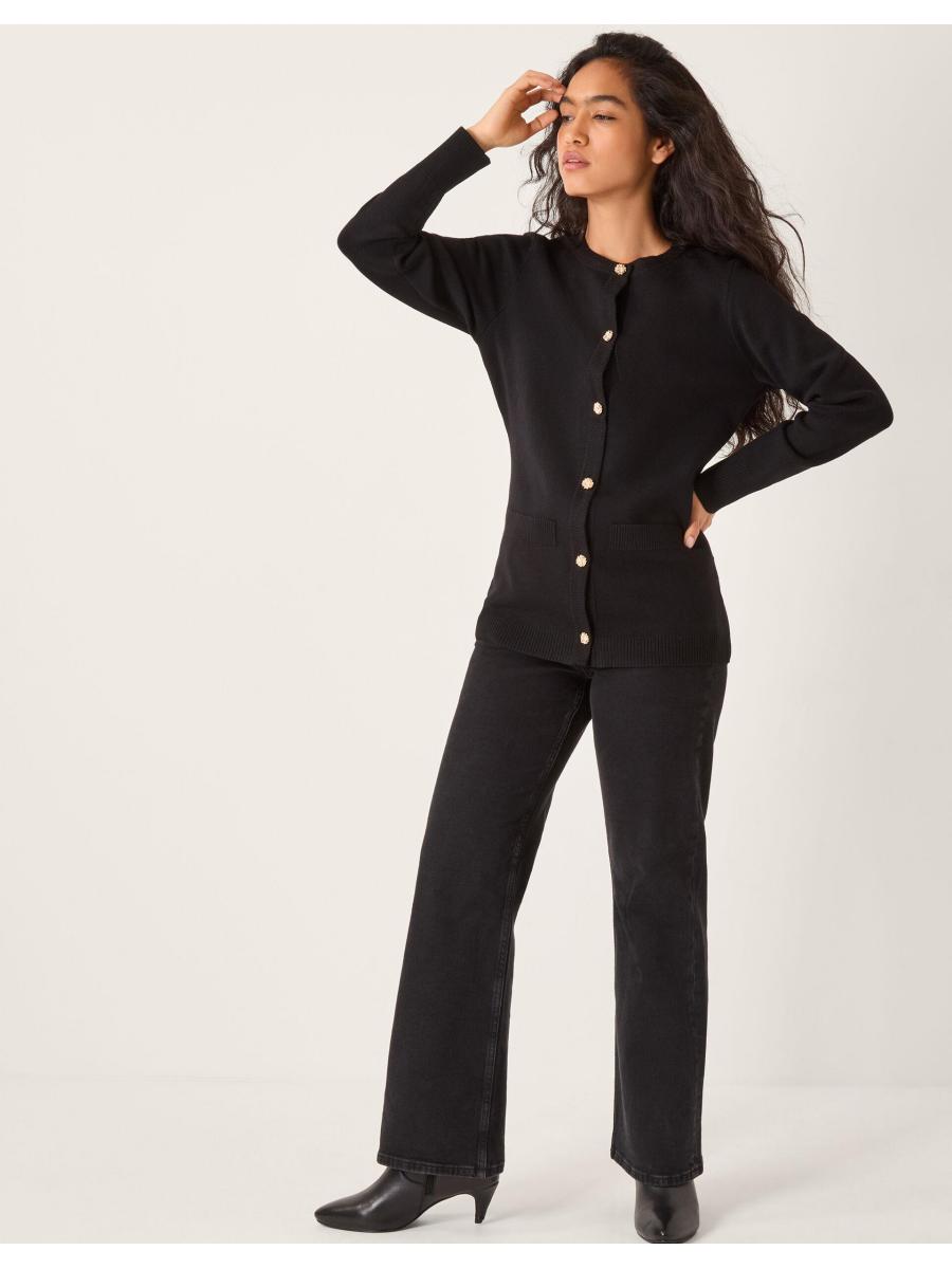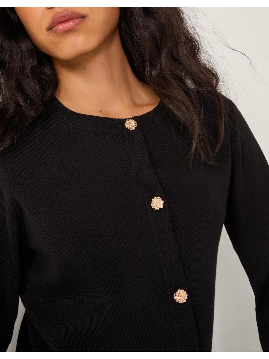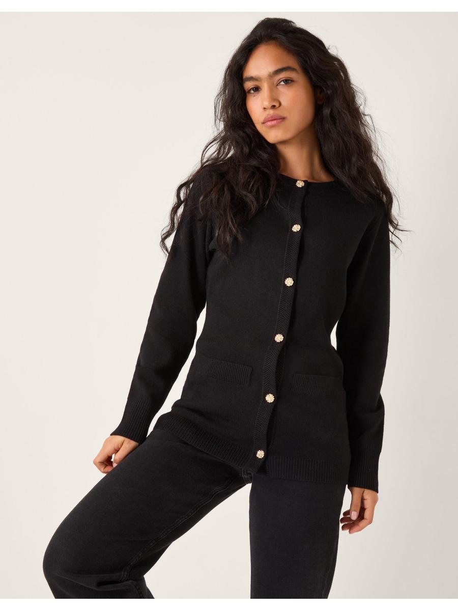 Description Your search for the perfect cardi is over. Designed with brooch-inspired gold tone buttons and handy pockets, this classic cardigan deserves a space in your wardrobe. Taking you from boardroom to brunch, you'll be wondering what you ever did without it. Black Details Fabric & Details Outer: Acrylic 30% , Polyamide 2 20% , Polyester (Recycled) 44% , sheep wool 6% L 60 CM machine wash Button fastening Crew Long sleeves Plain Regular fit Weight: 500.0 ID: 10013110001b-details__content-item"> Outer: Acrylic 30% , Polyamide 2 20% , Polyester (Recycled) 44% , sheep wool 6%