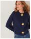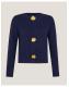 You're so golden. Embellished with ornate floral brooches to replace the buttons, this cardigan is a flourishing new addition to your knitwear collection. It's an elevated layer to go over all your tanks and T-shirts, and a piece you'll treasure for years to come. Blue