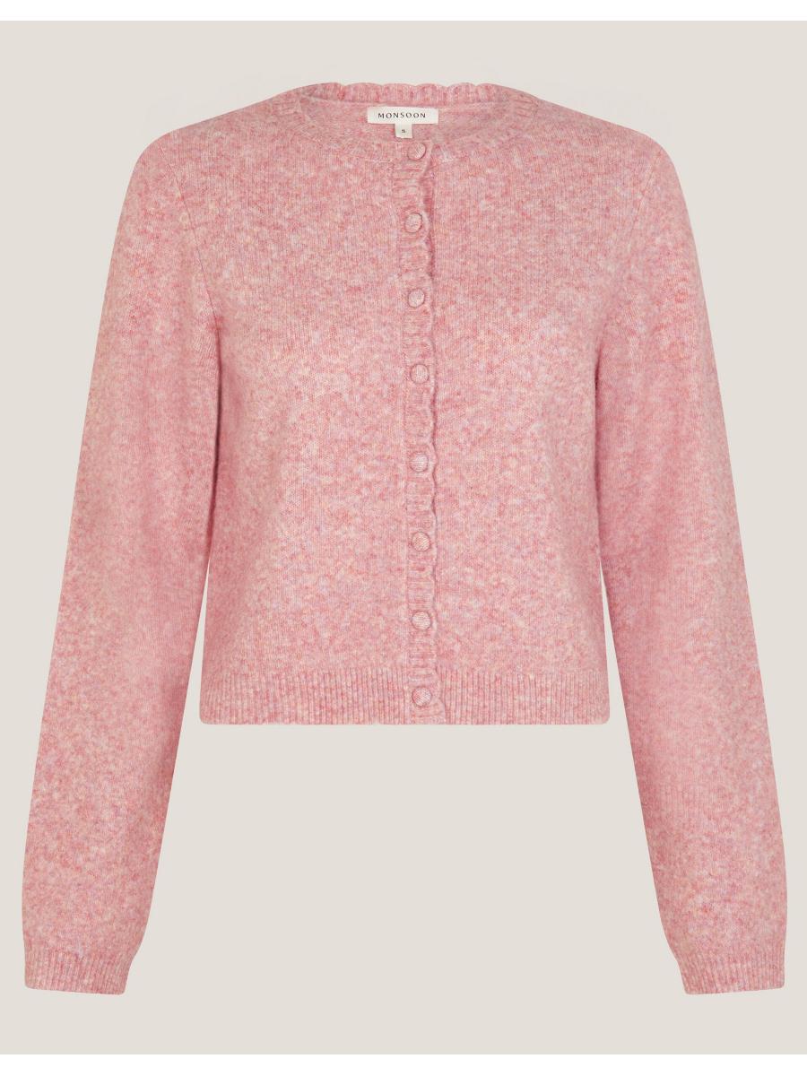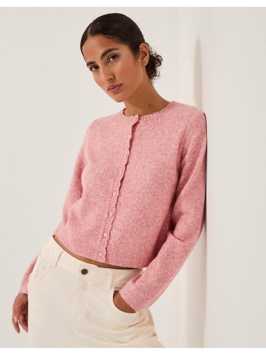 Cool girls wear cute cardigans. Stitched with super-soft yarns in candyfloss colours, this cosy button-up feels like a cuddle from a cloud. Trimmed with scalloped hems for a playful finish. Pink