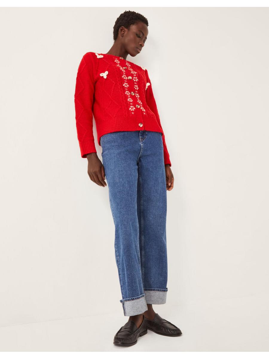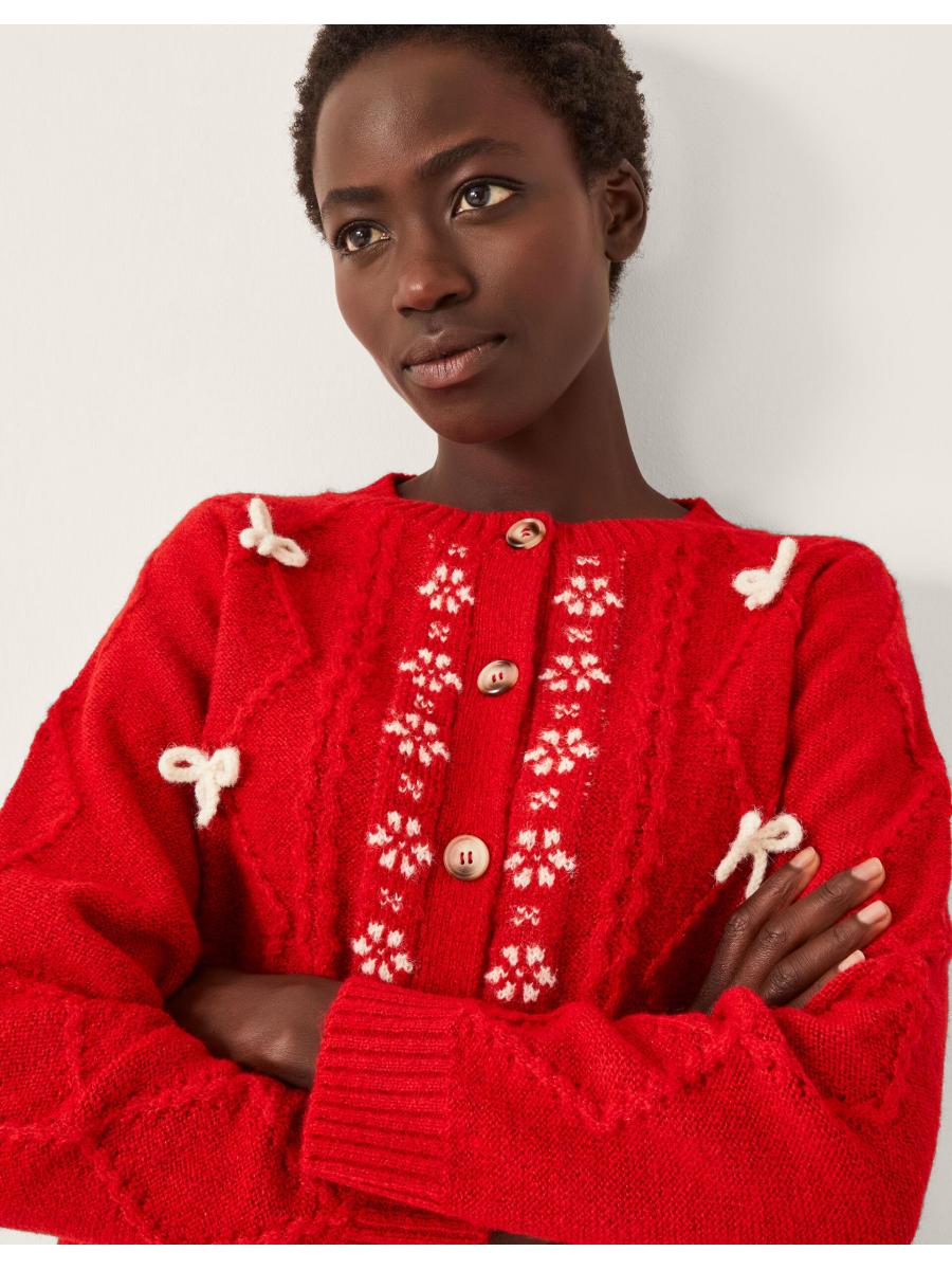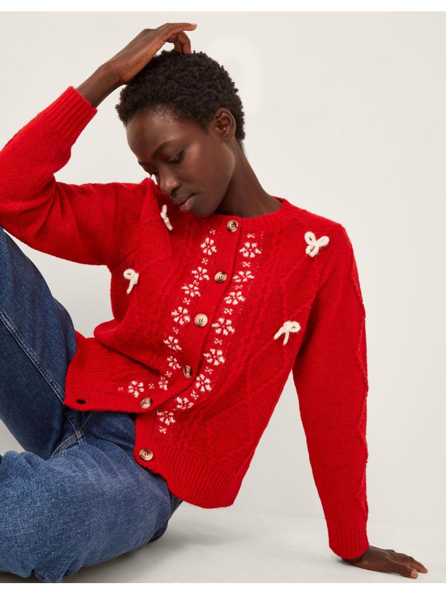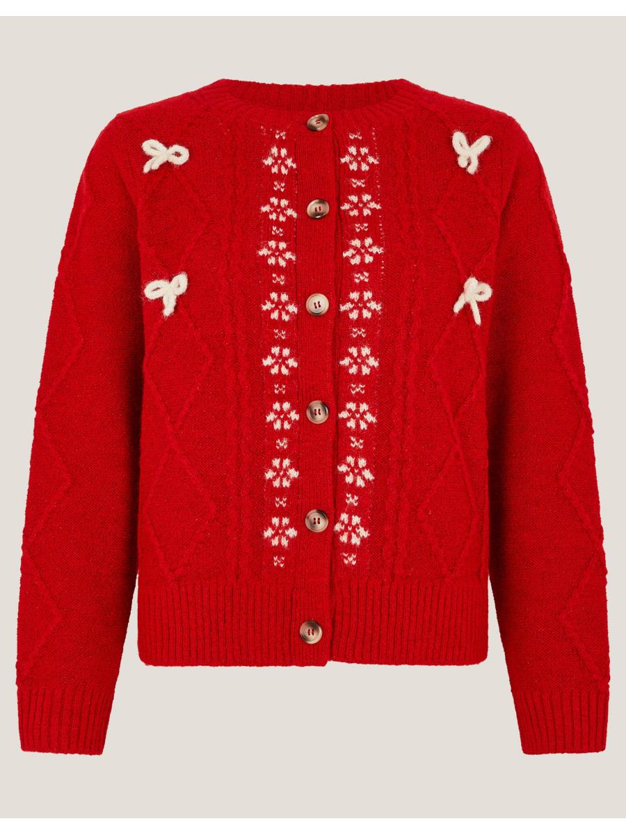 Description Bye-bye boring knitwear. Stitched in a classic cable knit, this cardigan is topped with white flower motifs and fuzzy bows to match. Finished with front button fastenings, style it solo or layered over a classic tee. Red Details Fabric & Details Outer: Polyamide 2 30% , Polyester (Recycled) 60% , sheep wool 10% L 60 CM machine wash Button fastening Crew Long sleeves Embroidered Weight: 400.0 ID: 10013860006b-details__content-item"> Outer: Polyamide 2 30% , Polyester (Recycled) 60% , sheep wool 10%
