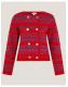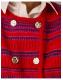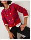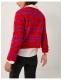 Turn up the brightness. An easy way to add a pop of colour to your winter looks, this cardigan is stitched with super-soft yarns in vibrant red, hot pink and navy blue stripes. Fastens with double-breasted metal buttons that showcase a lightly hammered finish. Red