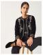 We're spoiling you with this one. Embellished with decorative beaded trims and sparkly flowers on each side, this velvet jacket is oh-so soft and primed for showing off. Slip it onto any plain tee and watch it instantly elevate. Black