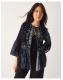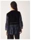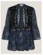 She's got it all. Packed with personality, this jacket transforms all your evening looks with a wink of boho flare. The bell sleeves and frilly hem are cloaked in ornate paisley motifs, whilst the the luxe velvet bodice is embellished by hand with sparkly sequins and intricate beading in a mix of geometric shapes. Blue