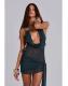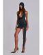 70% polyamide, 25% polyester, 5% elastane. Lining: 92% polyester, 8% elastane Trim: 100% zinc alloy