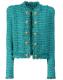 无领纽扣花呢西服夹克 - 水绿色 - 女士 - Balmain - 垫肩.