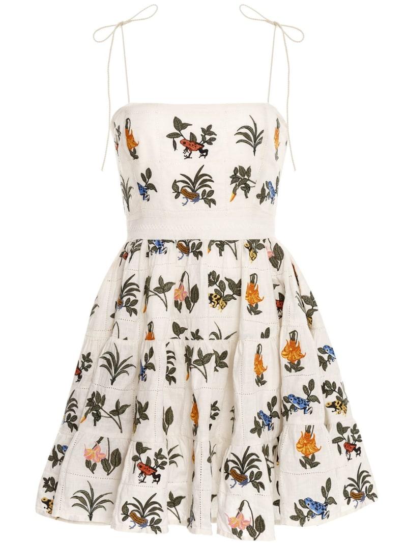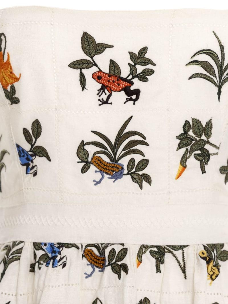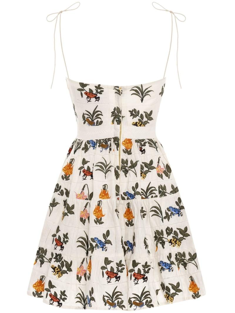 Lima印花亚麻迷你连衣裙 - 象牙色/多色 - 女士 - Agua By Agua Bendita - 绑带式细肩带.