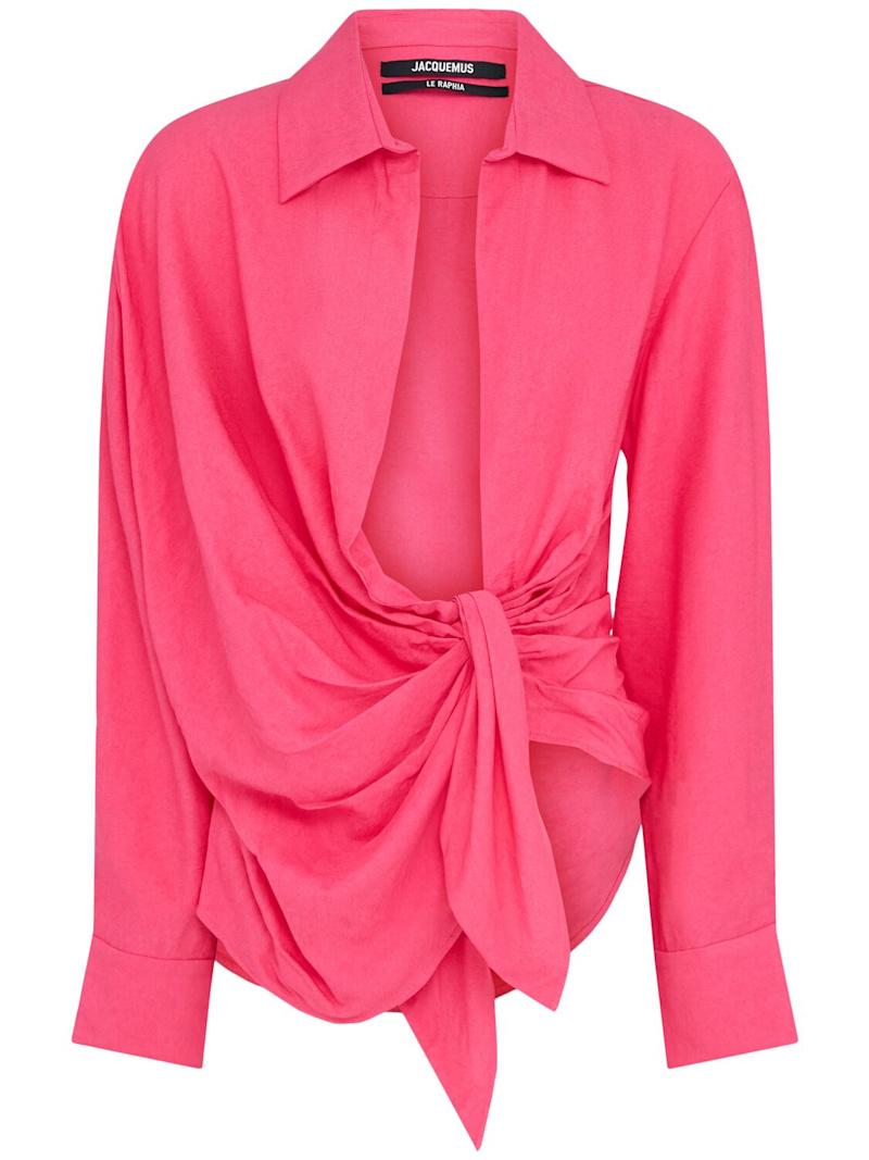 La Chemise Bahia打结粘胶纤维衬衫 - 粉色 - 女士 - Jacquemus - 正面隐藏式纽扣开合.
