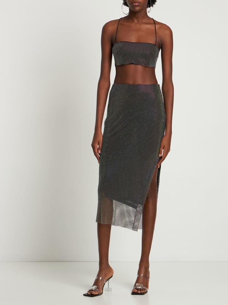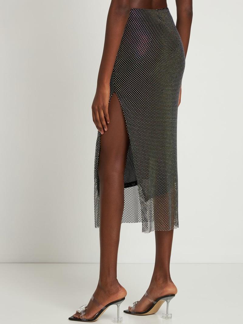 Caitlin珠饰长款开叉半身裙 - 黑色 - 女士 - Rotate - 侧面隐形拉链开合.