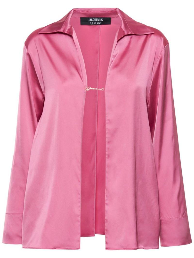 La Chemise Notte开放式绸缎衬衫 - 粉色 - 女士 - Jacquemus - 正面钩扣开合.