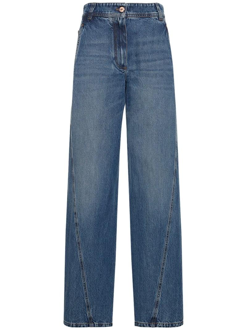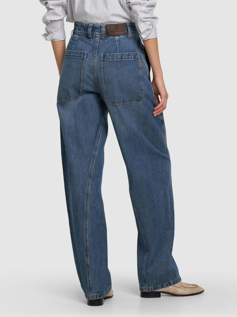 高腰直筒棉质牛仔裤 - 蓝色 - 女士 - Brunello Cucinelli - 正面纽扣和隐藏式拉链开合.