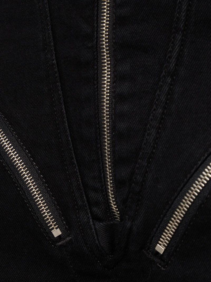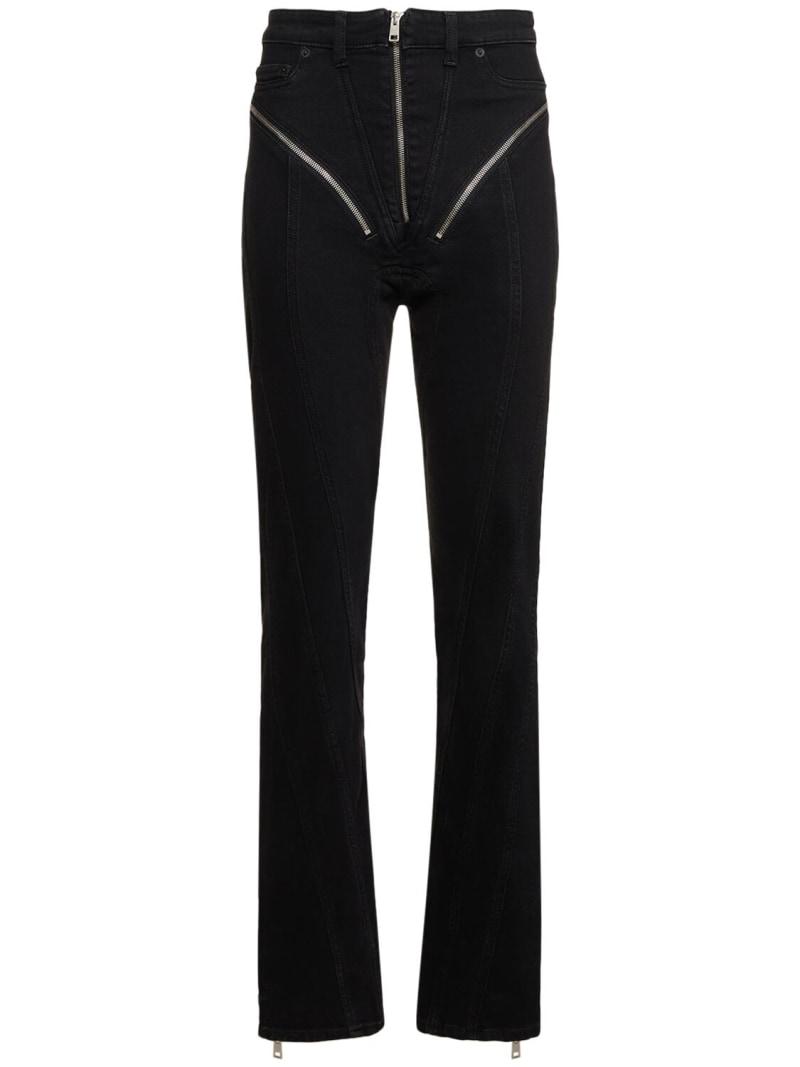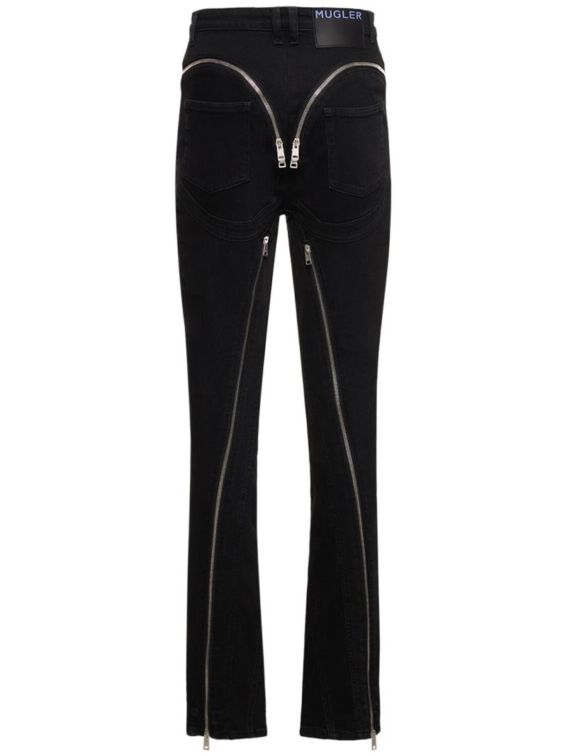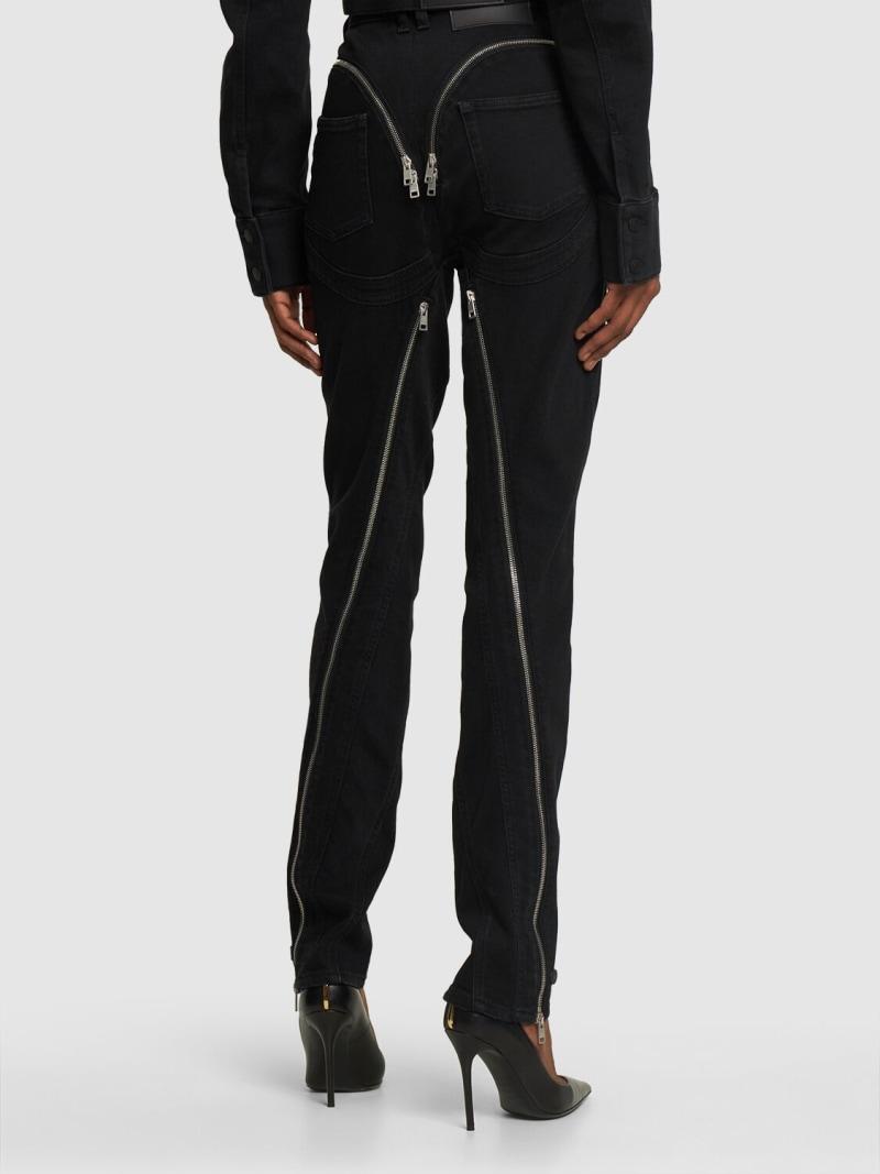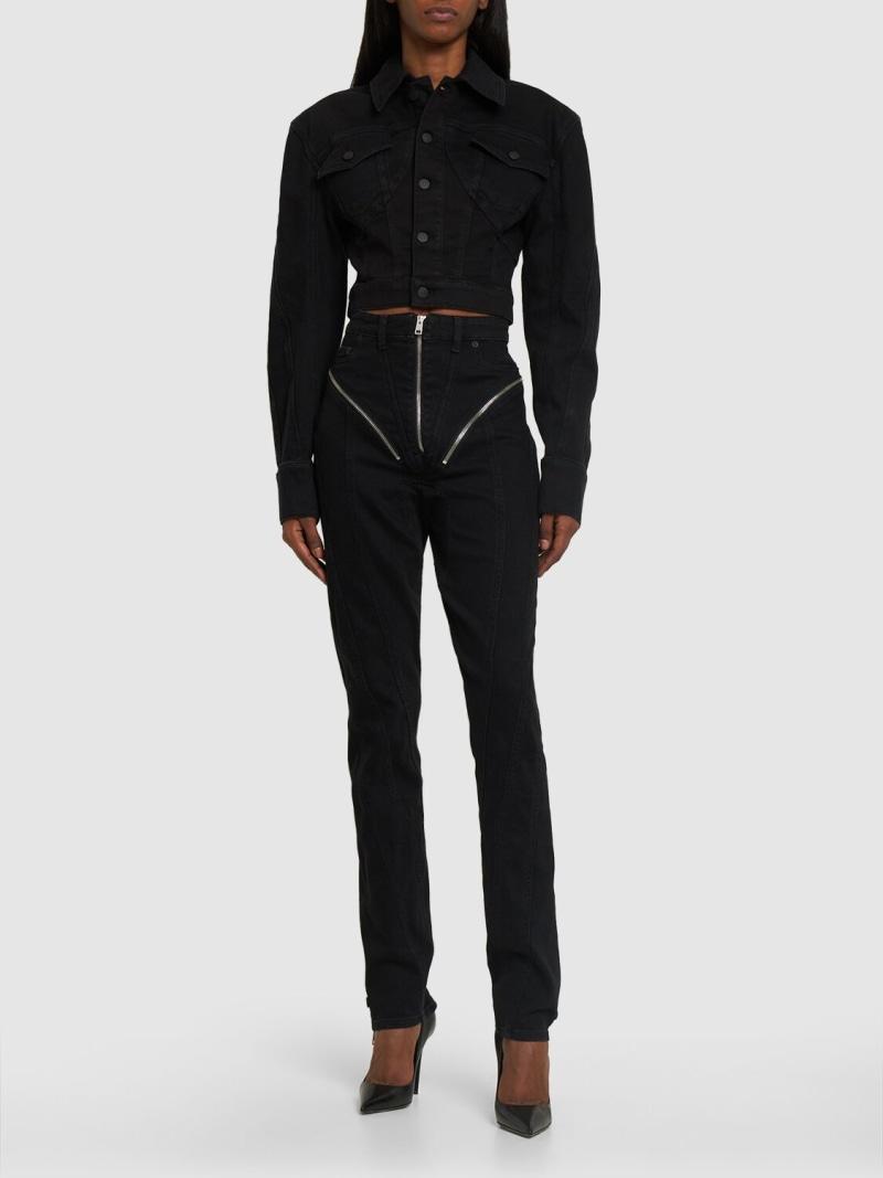 高腰拉链开合紧身弹力牛仔裤 - 黑色 - 女士 - MUGLER - 正面拉链开合.