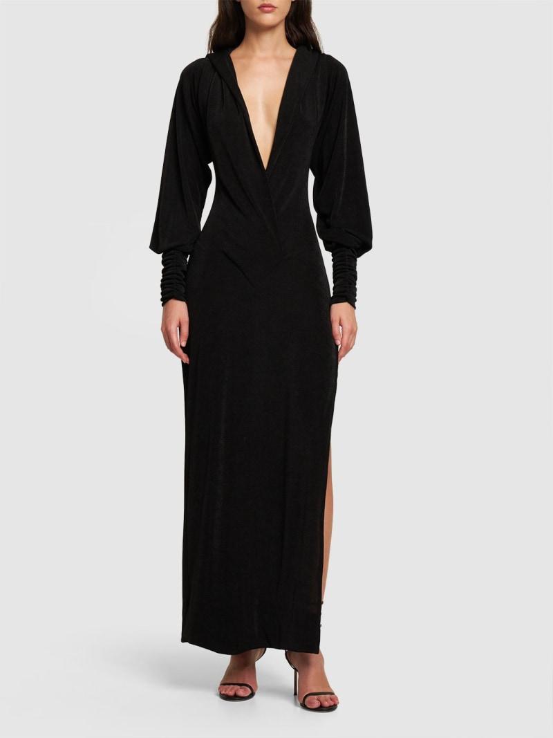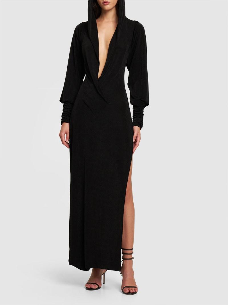 Slinky开叉连衣裙 - 黑色 - 女士 - Rotate - 不可拆卸风帽.