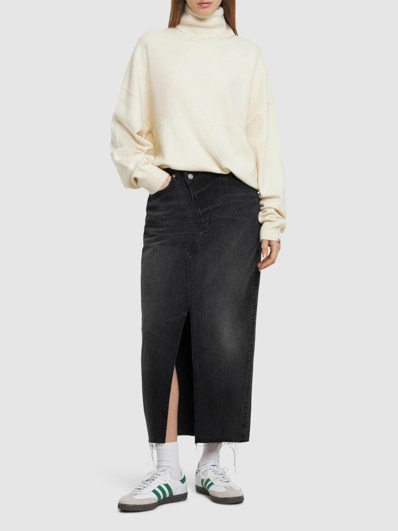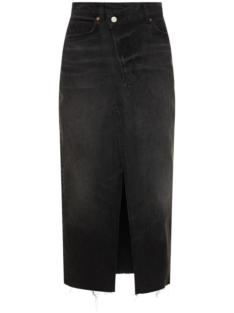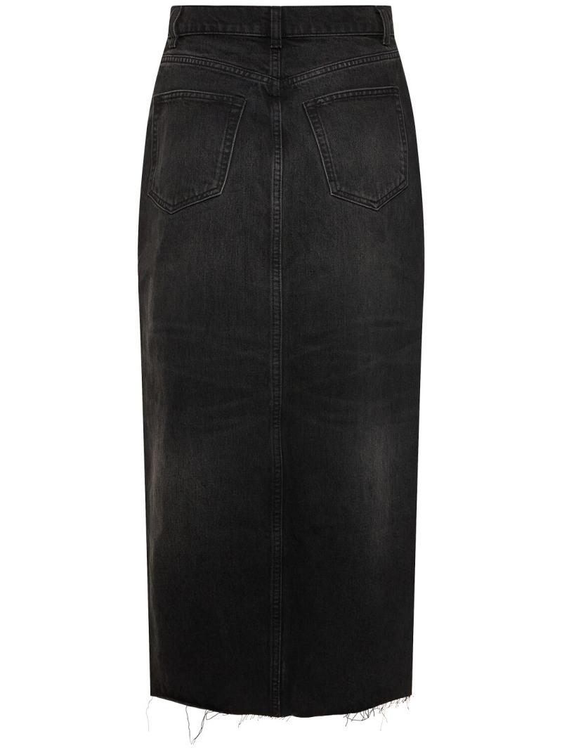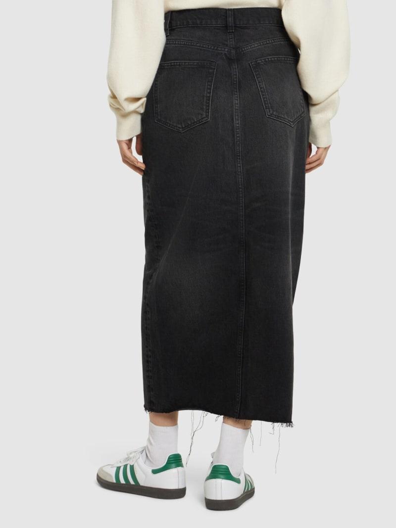 Nila牛仔长款半身裙 - 黑色 - 女士 - Reformation - 正面纽扣和隐藏式拉链开合.