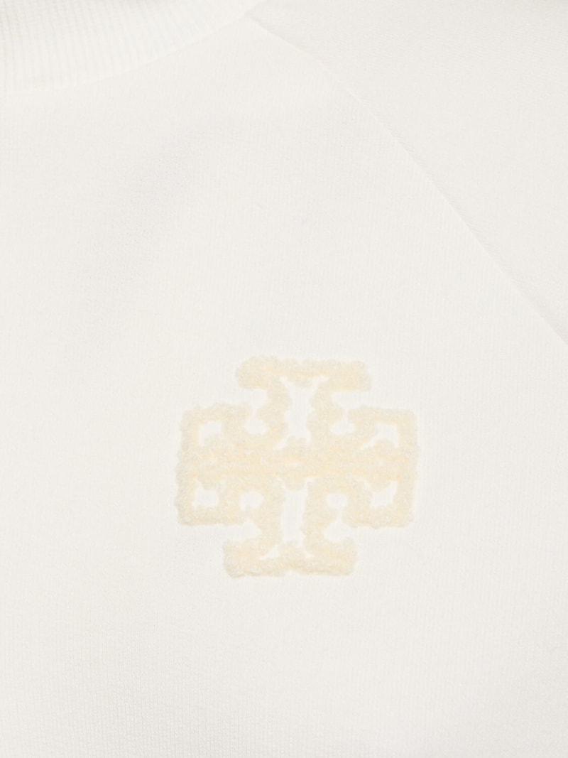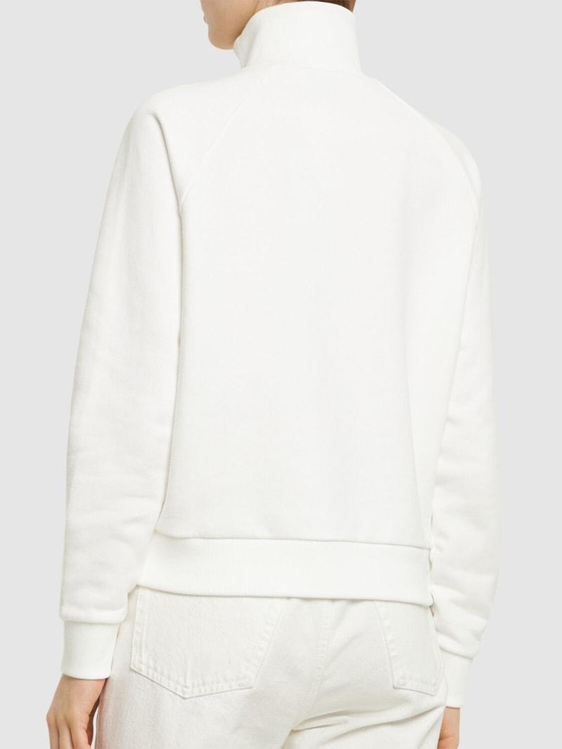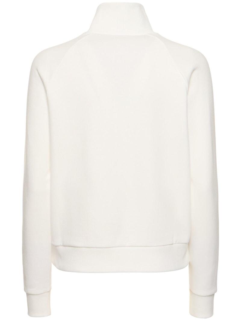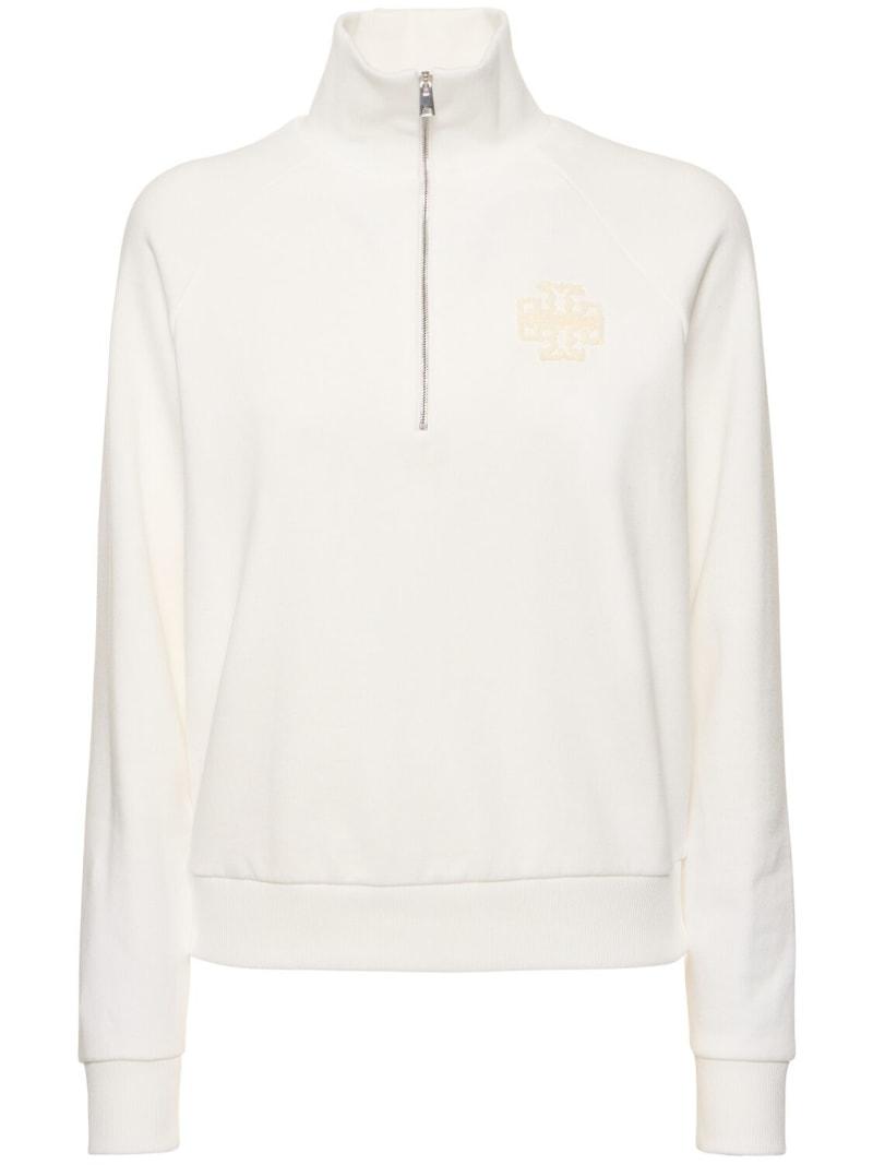 法式毛圈布半长拉链棉质卫衣 - 米黄色/白色 - 女士 - Tory Sport - 正面半长拉链开合.