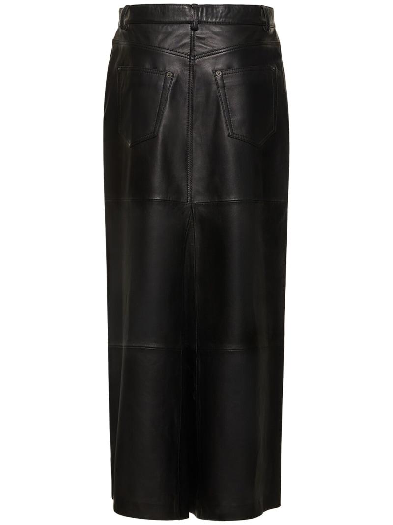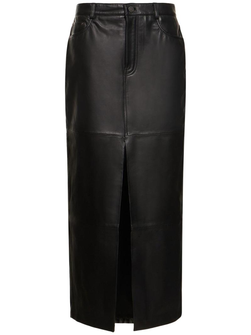 Veda Tazz皮革超长半身裙 - 黑色 - 女士 - Reformation - 正面纽扣和隐藏式拉链开合.