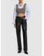 低腰皮革牛仔裤 - 黑色 - 女士 - Alexander Wang - 正面纽扣和隐藏式拉链开合.