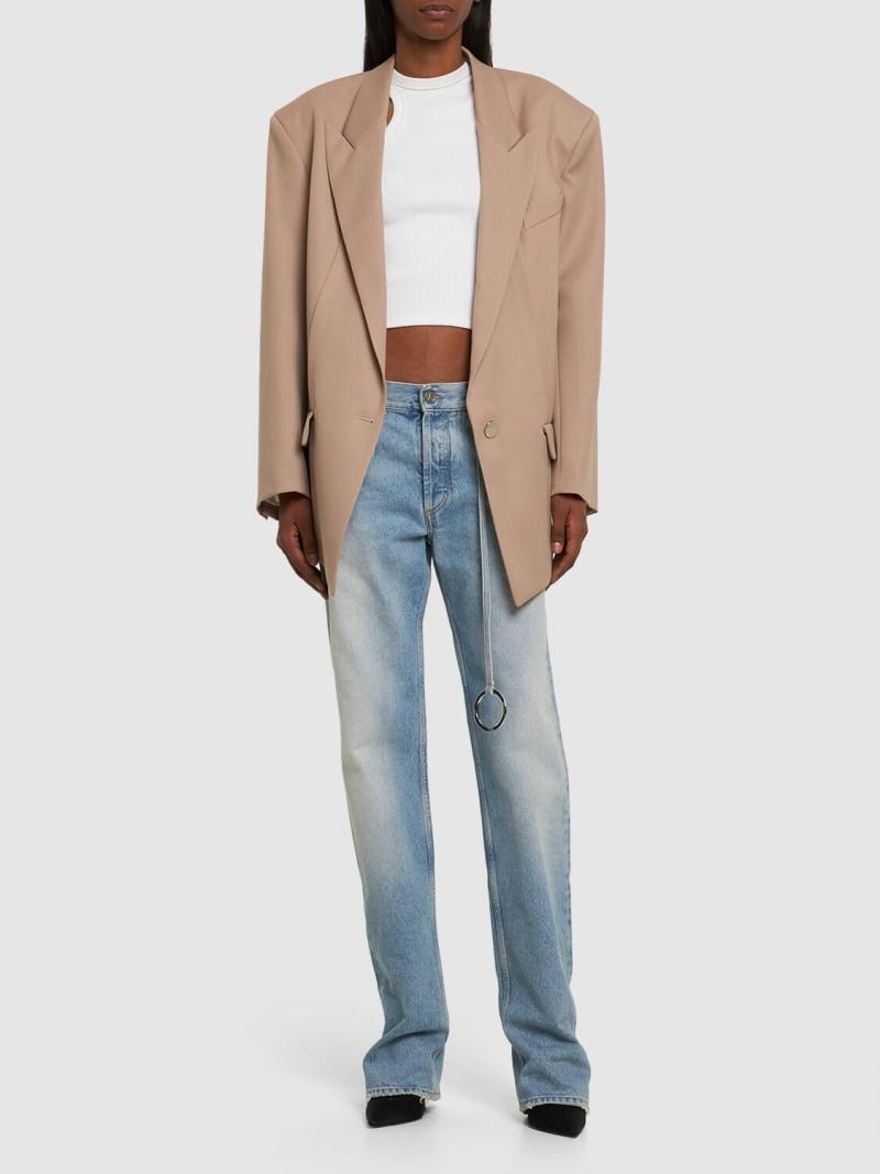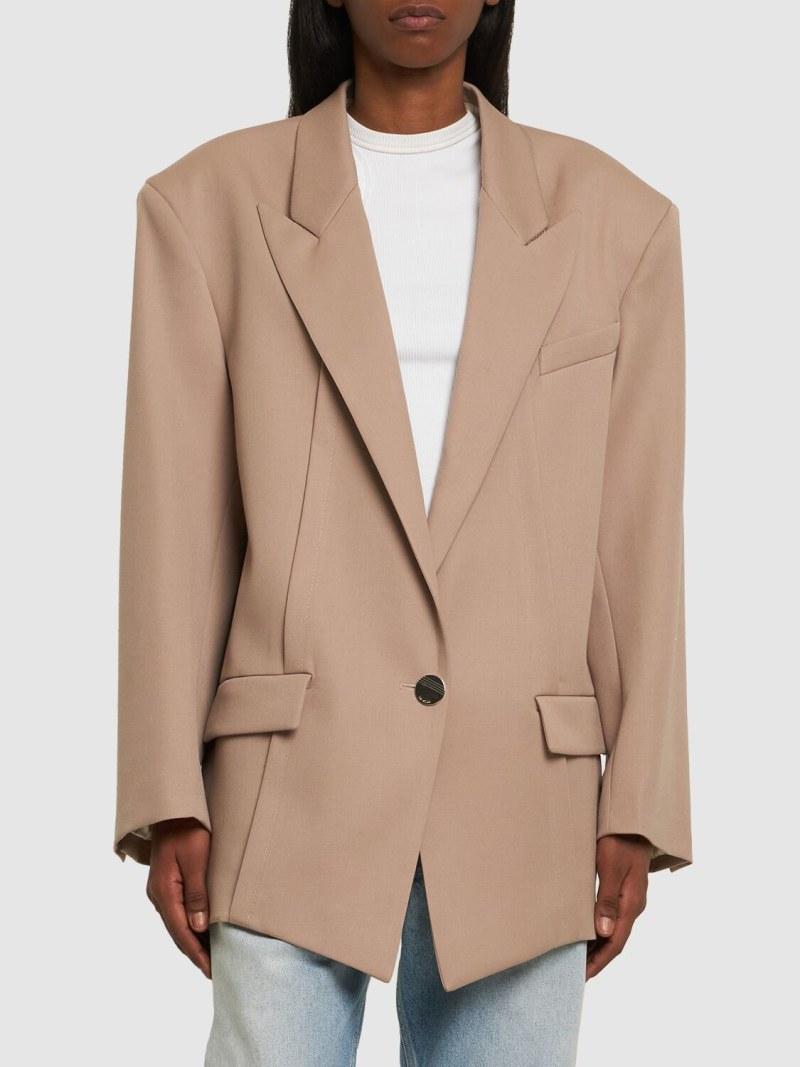 Glen华达呢单排扣西服夹克 - 米黄色 - 女士 - The Attico - 正面纽扣开合.