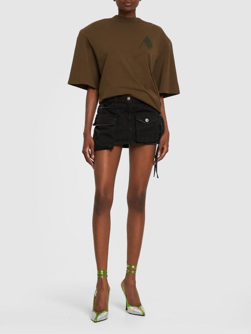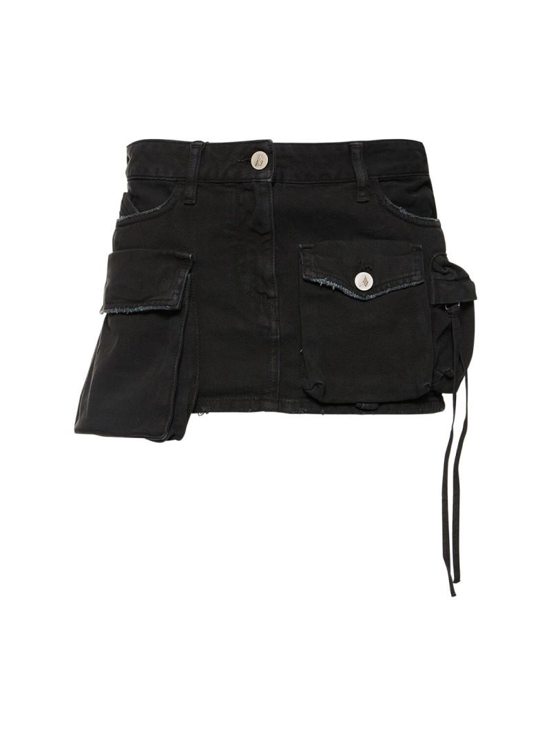 Fern工装牛仔迷你短裙 - 黑色 - 女士 - The Attico - 正面纽扣和隐藏式拉链开合.
