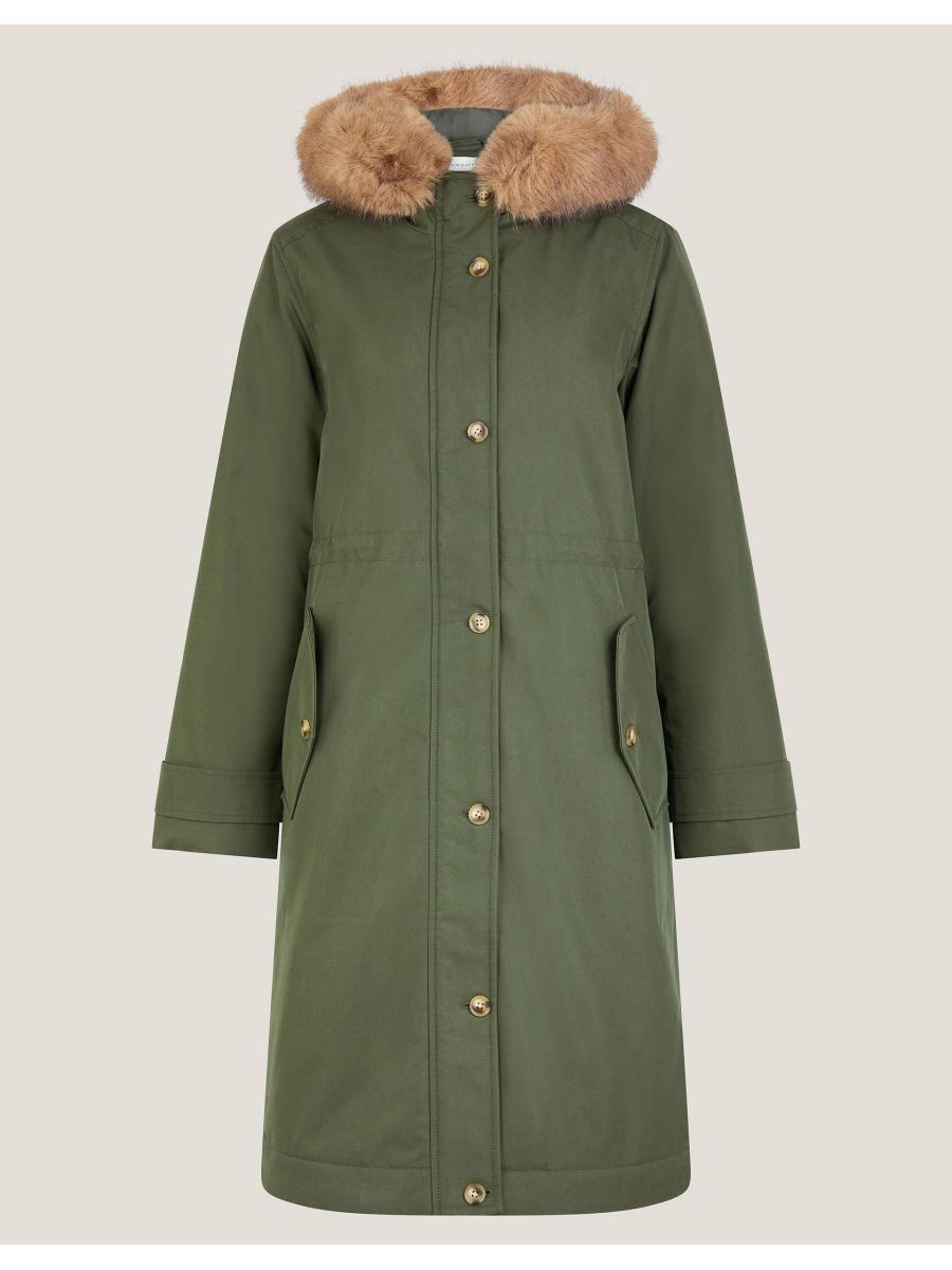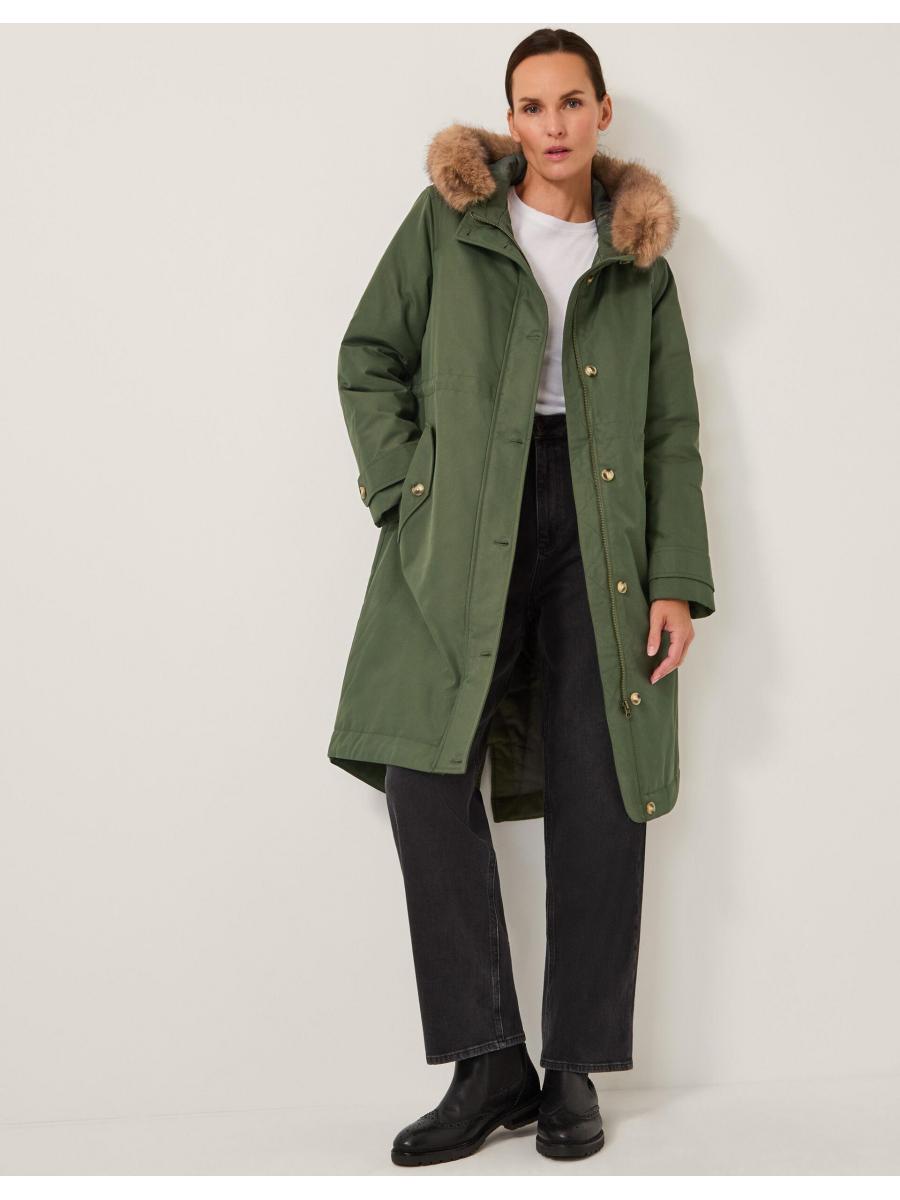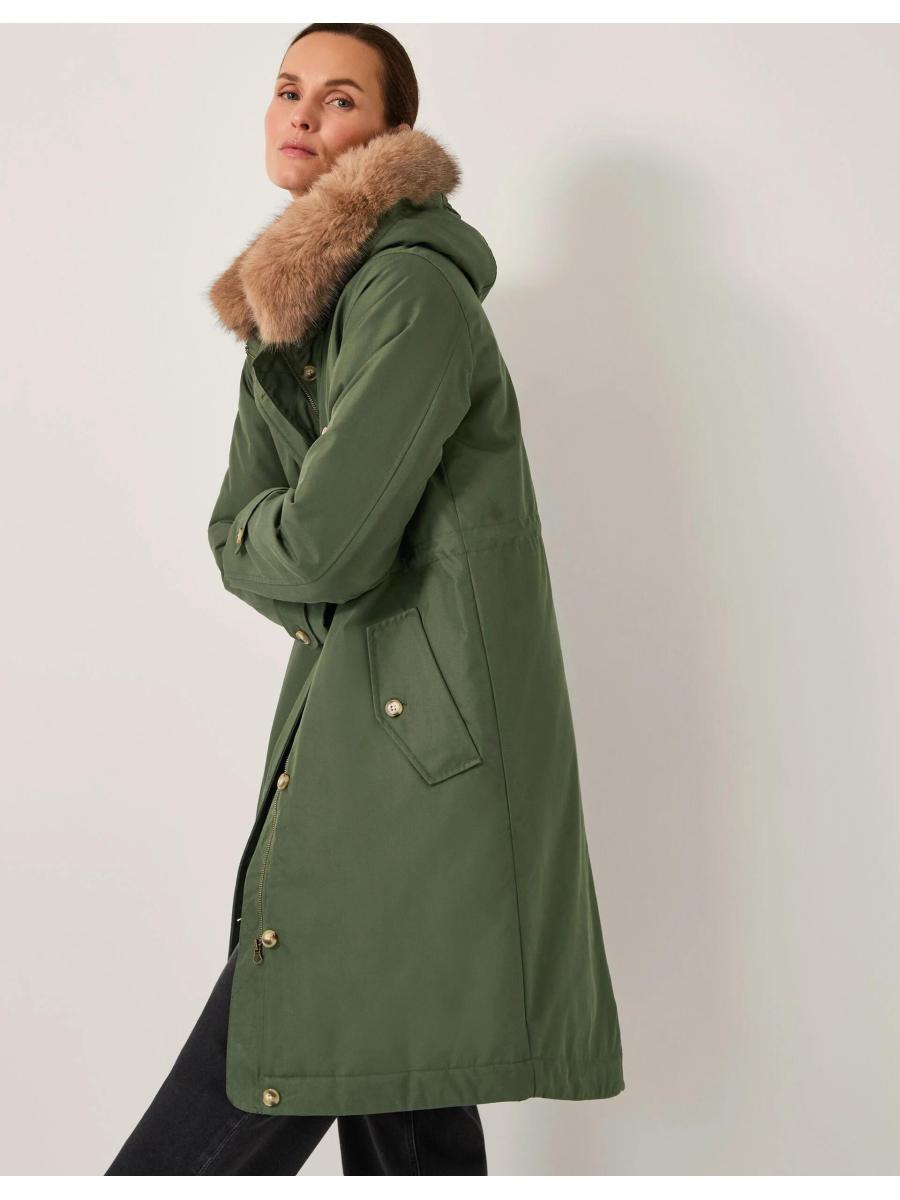 Description Brrrrrr. Designed to keep you cosy all season long, this classic parka coat features a faux fur hood, big side pockets and a zip with button fastenings. Green Details Fabric & Details Outer: Cotton 61% , Polyester 39% L 120 CM machine wash Zip fastening High neck Long sleeves Plain Weight: 188.0 ID: 10009820105b-details__content-item"> Outer: Cotton 61% , Polyester 39%