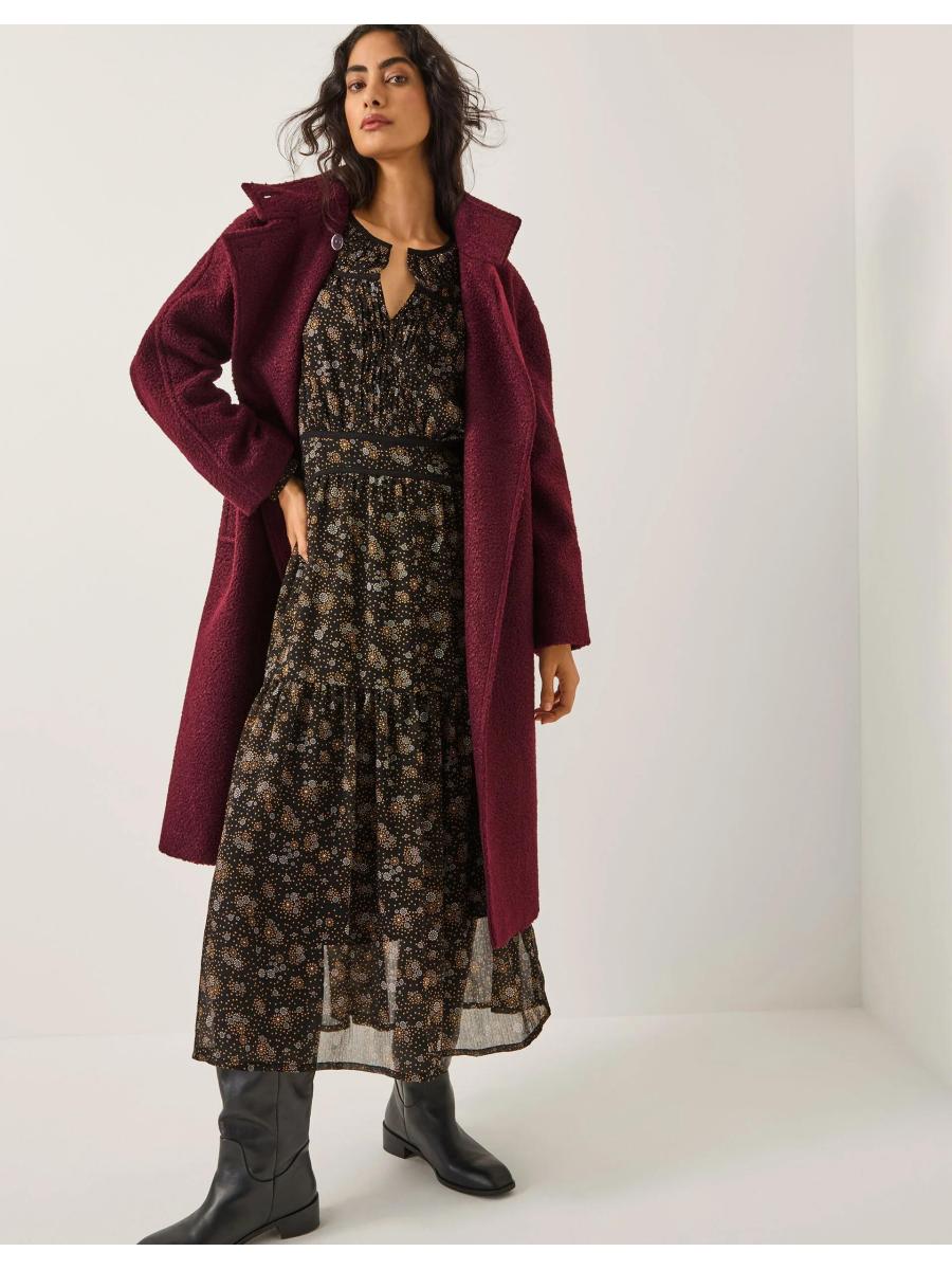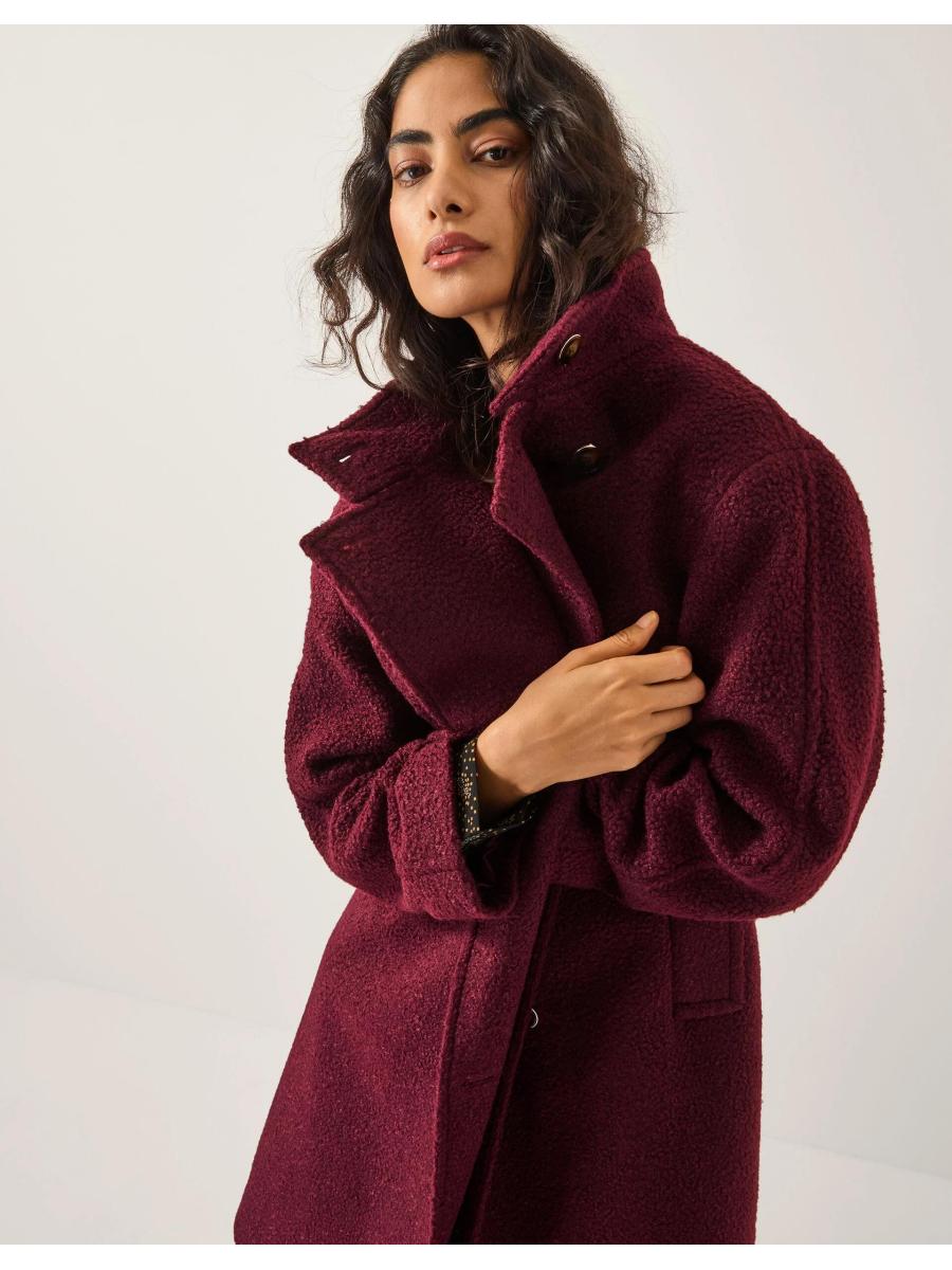 So soft, it feels like a hug. Crafted from trendy bouclé fabric, this cosy coat is the perfect addition to your winter wardrobe. Finished with side pockets and front button fastenings. Red