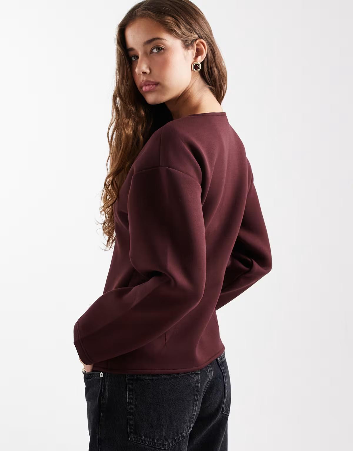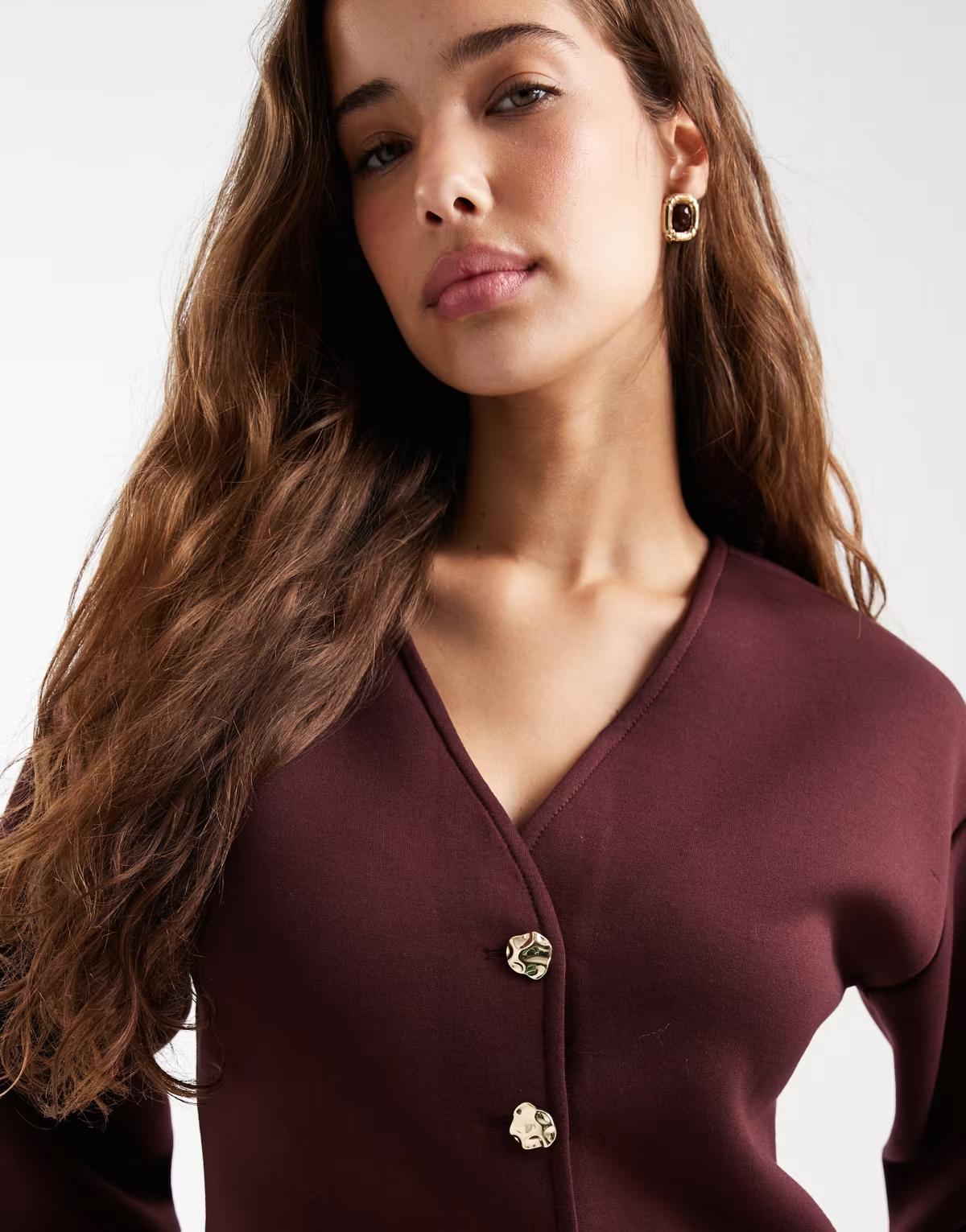 ONLY structured cardigan in dark burgundy in scuba-style fabric