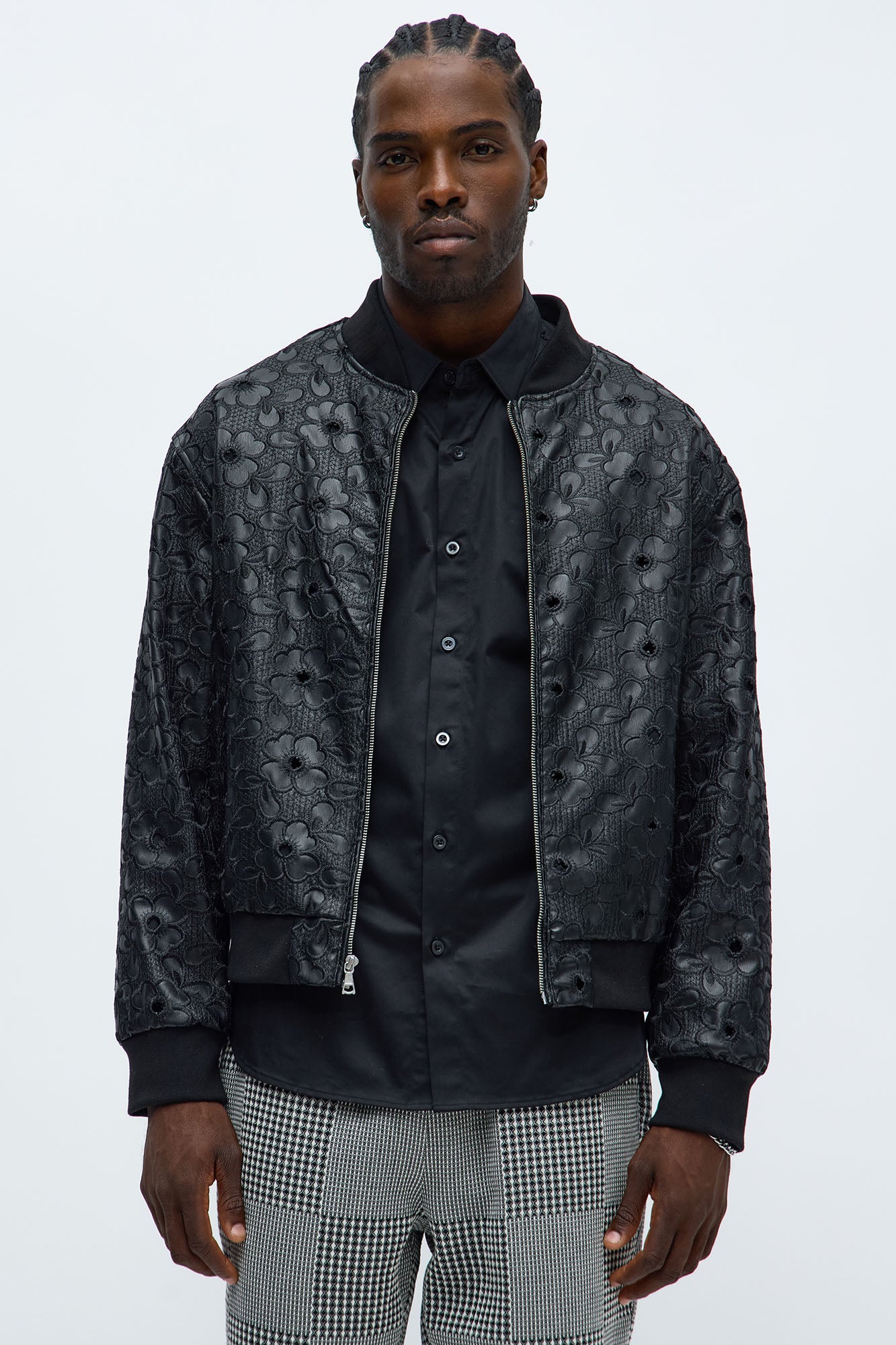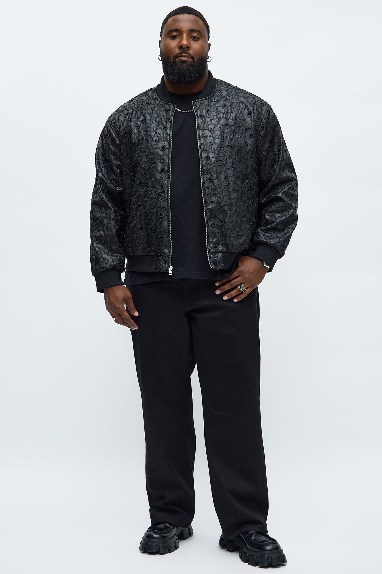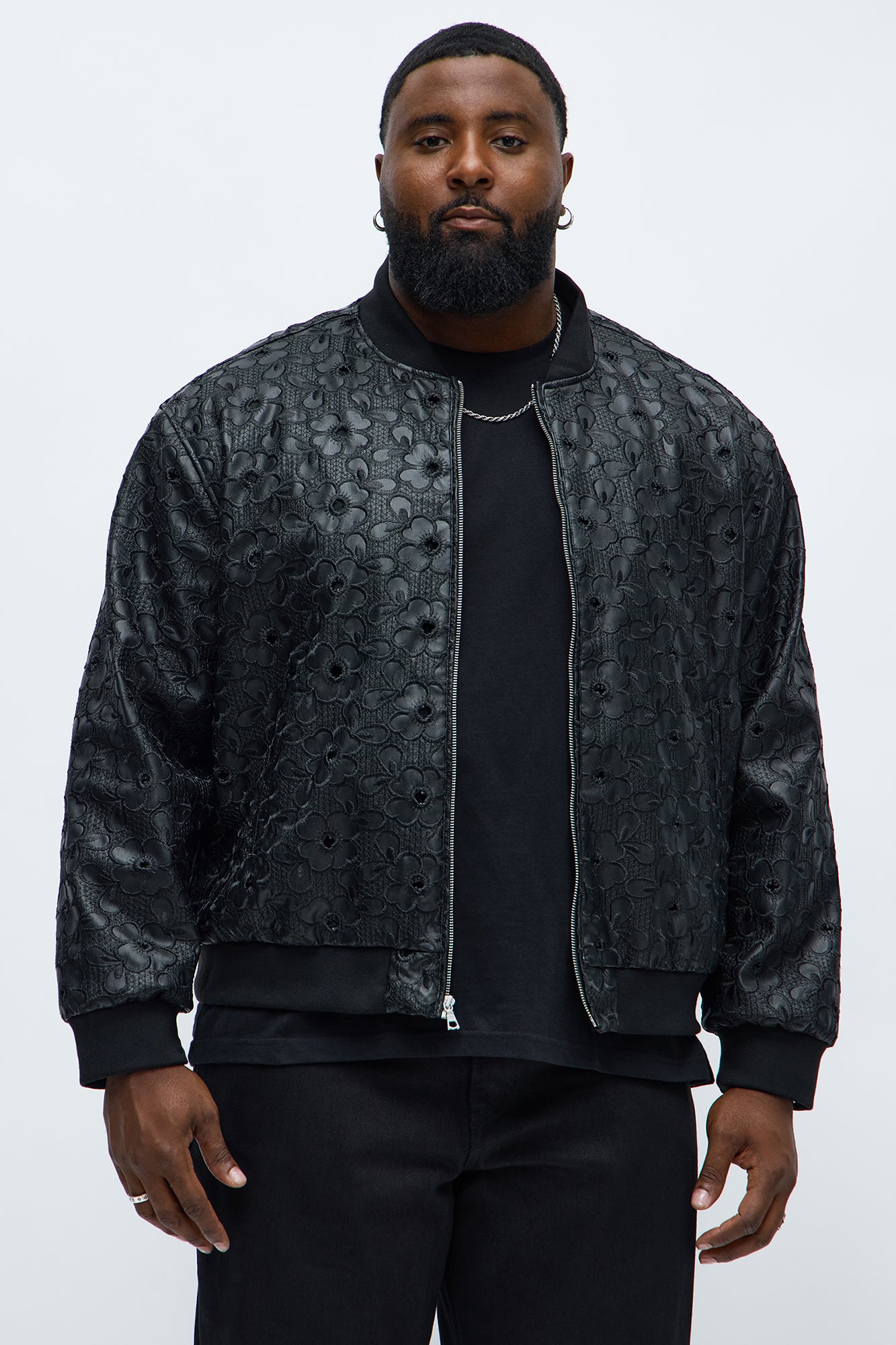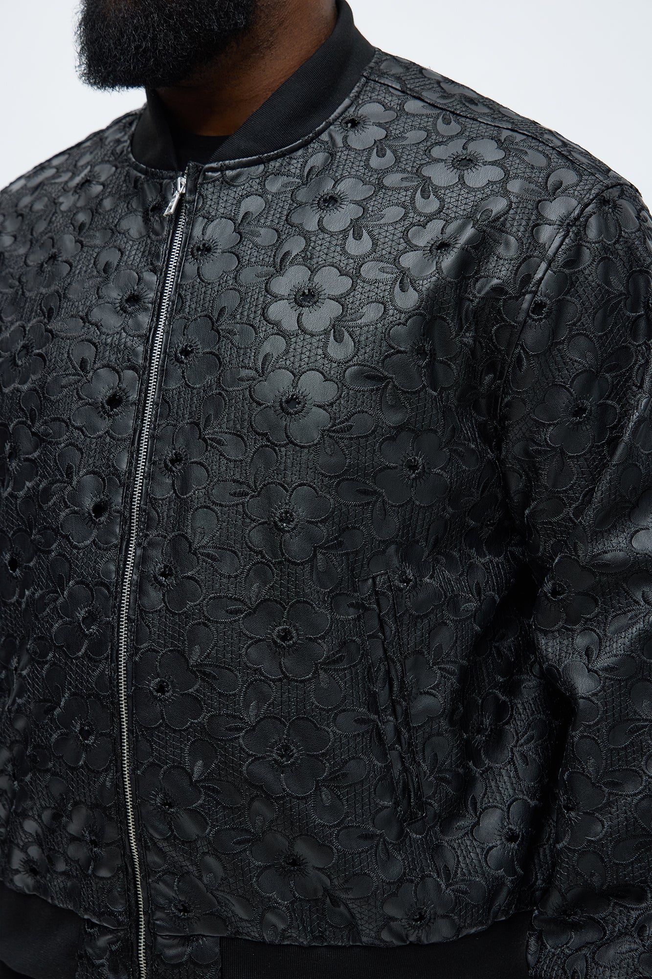 Relaxed Faux Leather Embroidered Floral Bomber Jacket - Black | Fashion Nova