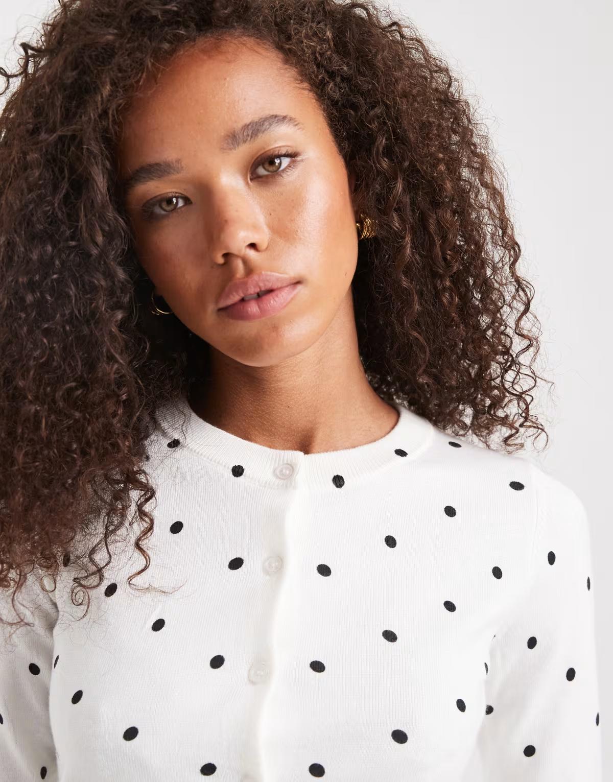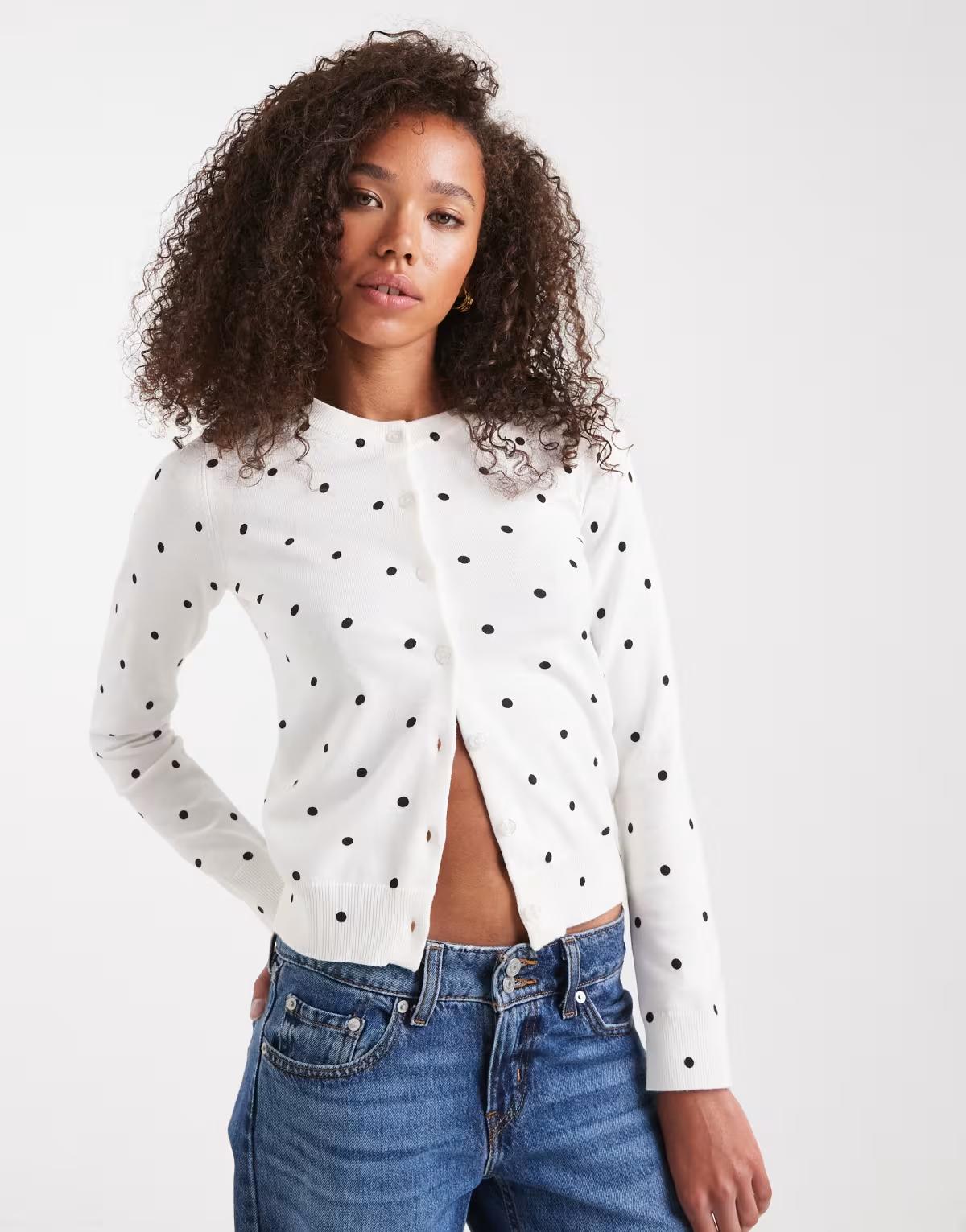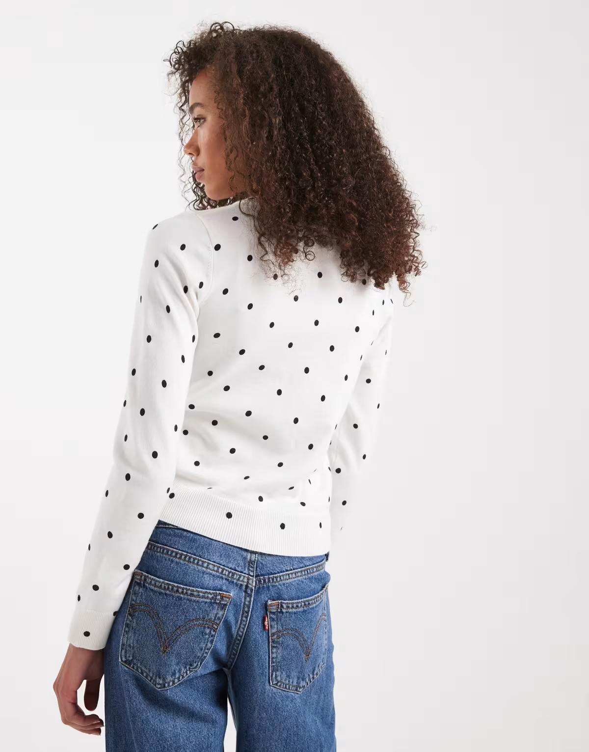 Edikted Shea polka dot knitted cardigan in white