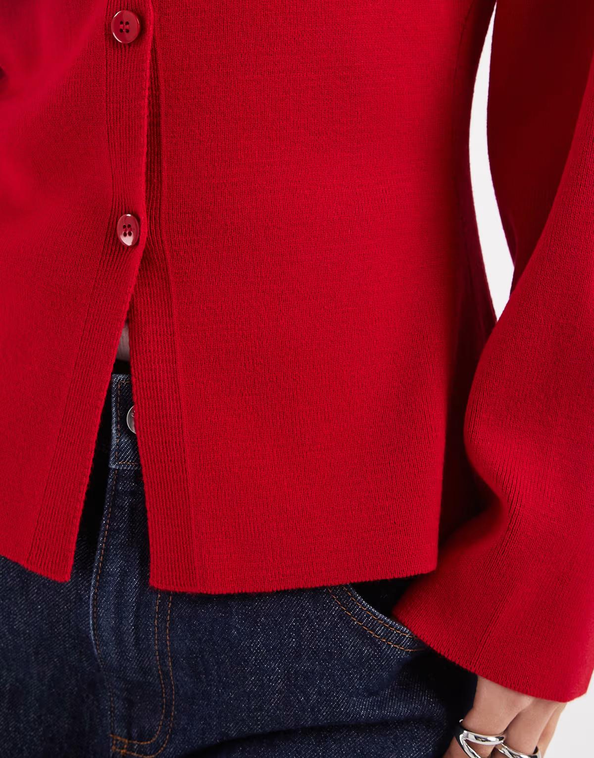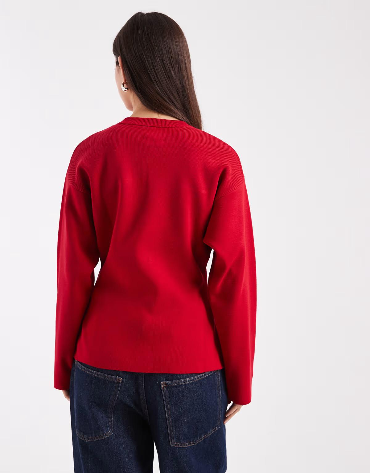 ASOS DESIGN knitted structured crew neck cardigan in red