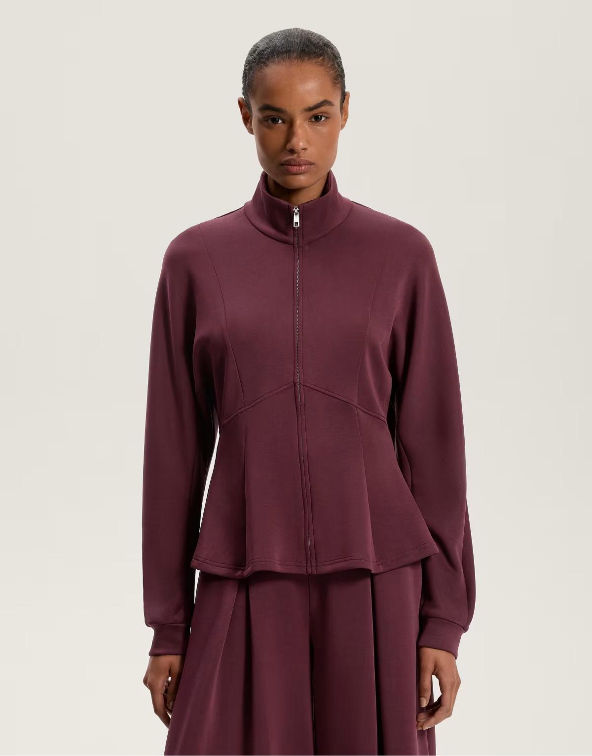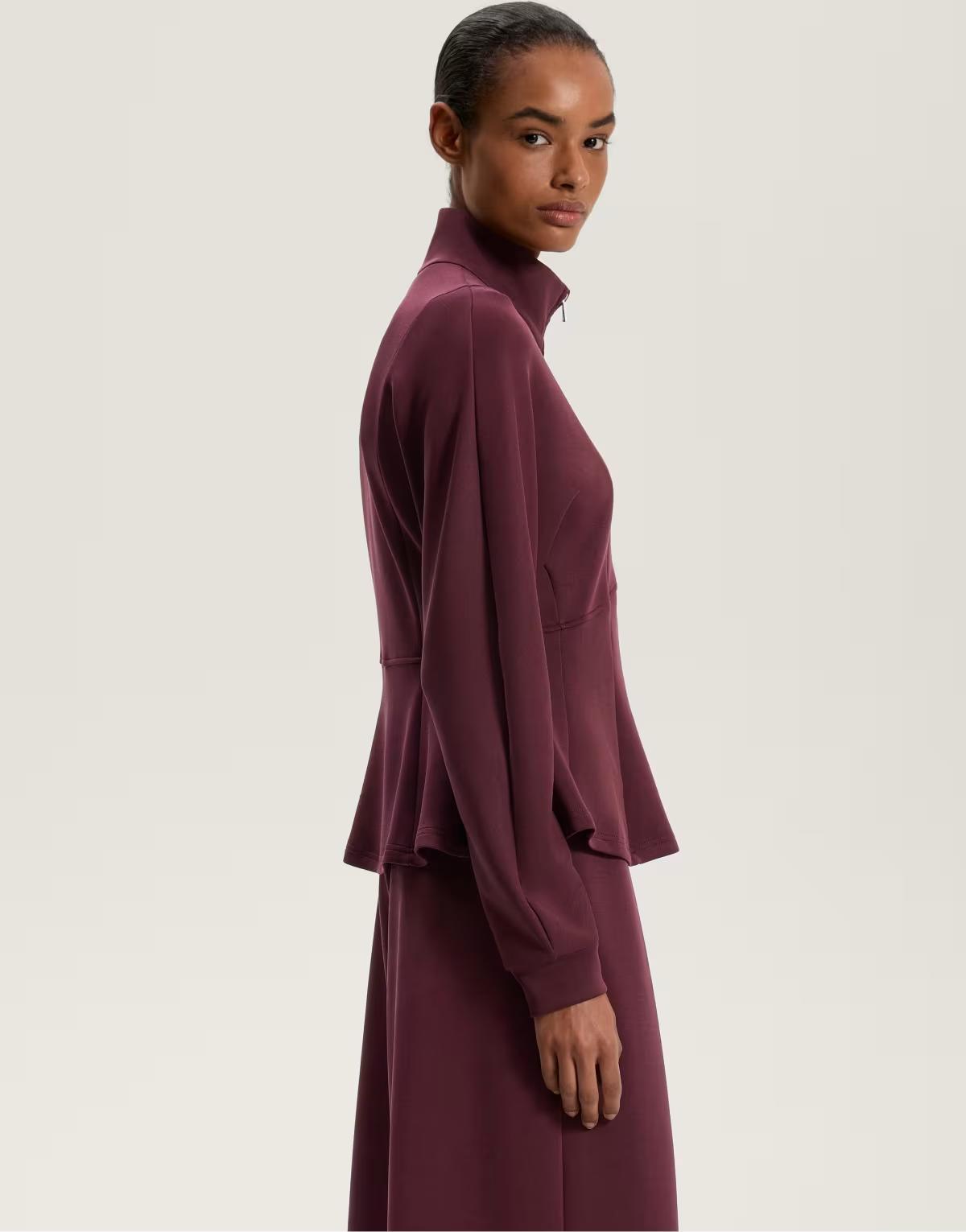 OYSHO Soft-touch modal jacket with fitted waist in dark maroon