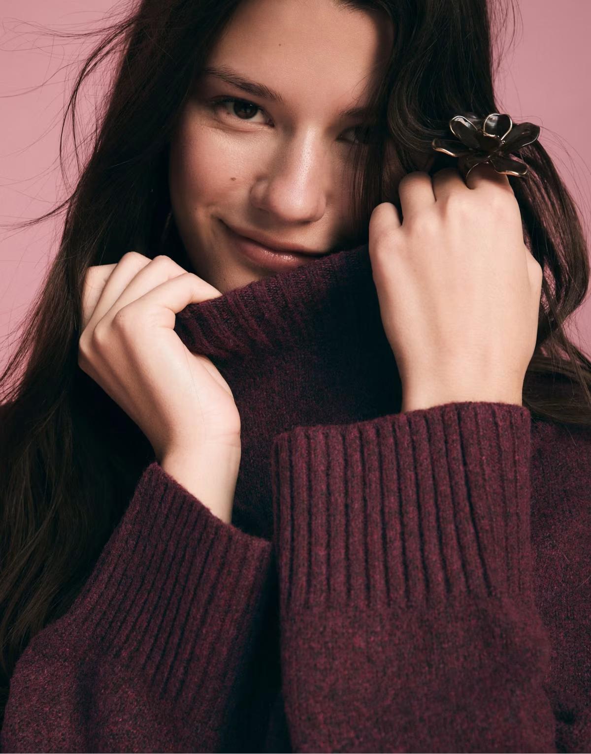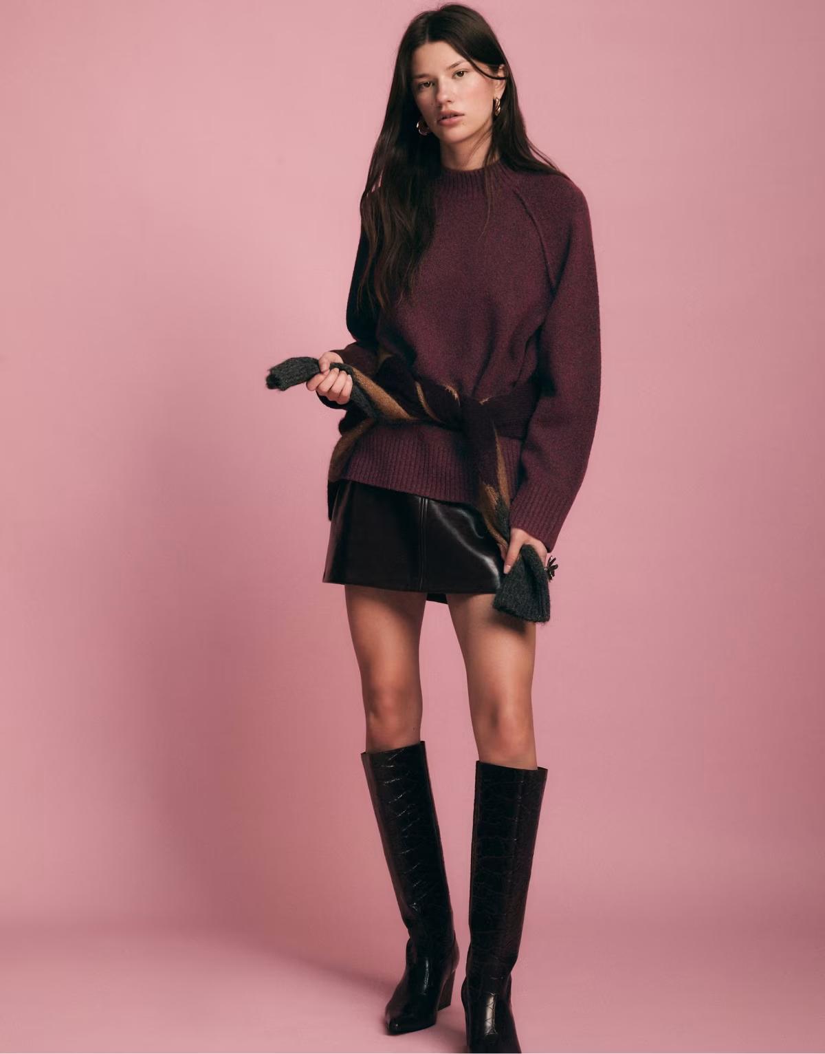 Stradivarius Basic knit jumper in aubergine