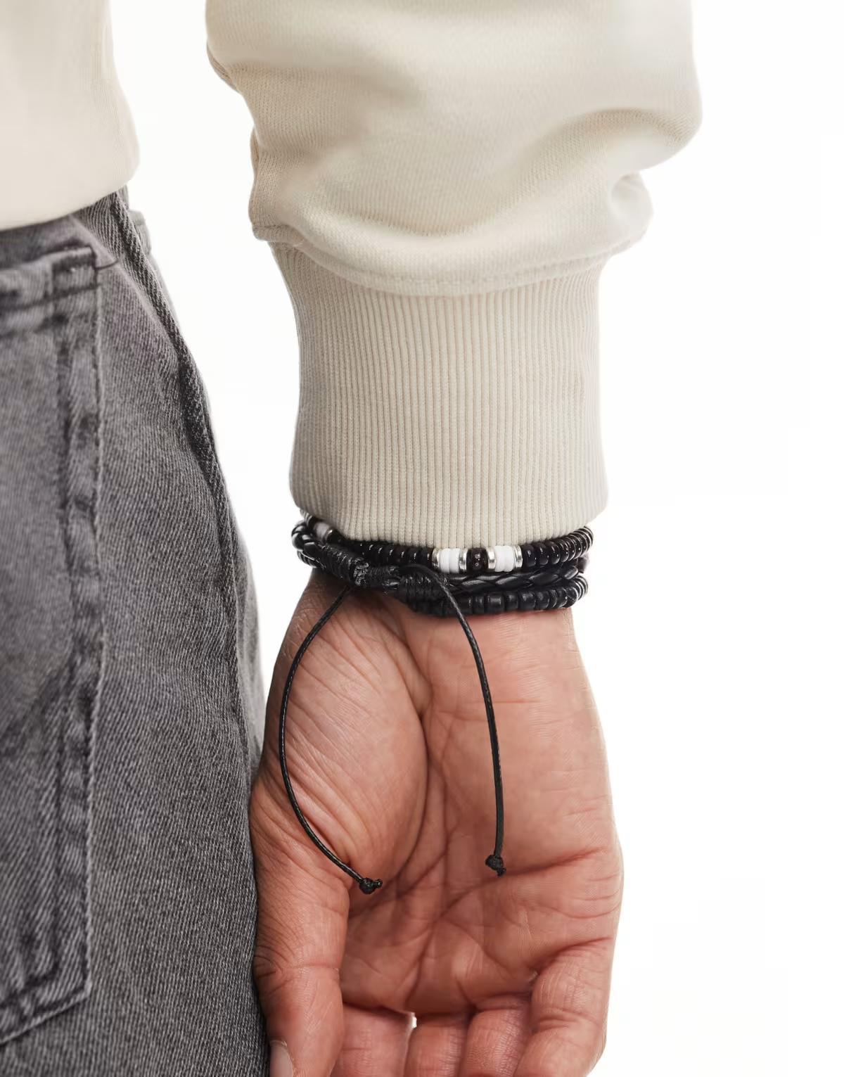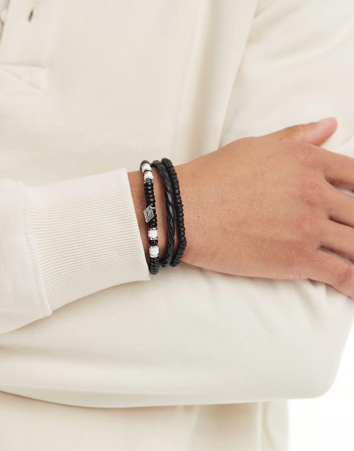 Classics 77 metropolis beaded and fabric bracelet combo in black